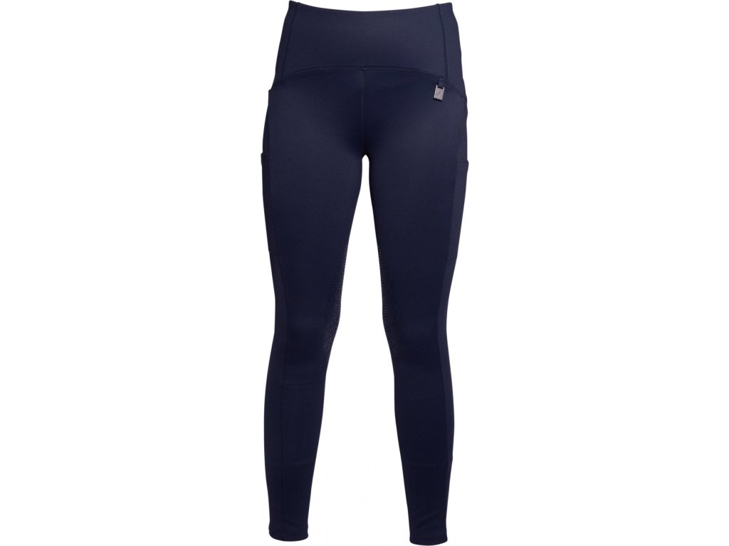 Dámske jazdecké legíny so silikónovým gripom na kolenách a vyšším pásom, ktorý zaisťuje pohodlie nielen pri jazde, ale aj pri celodennom nosení. Legíny majú dve praktické bočné vrecká, ktoré sú ideálne na uloženie mobilného telefónu alebo rôznych drobností. Vyrobené sú z bi-elastického materiálu, ktorý sa dokonale prispôsobí postave a umožňuje voľnosť pohybu.