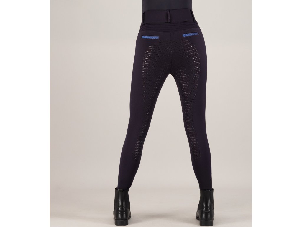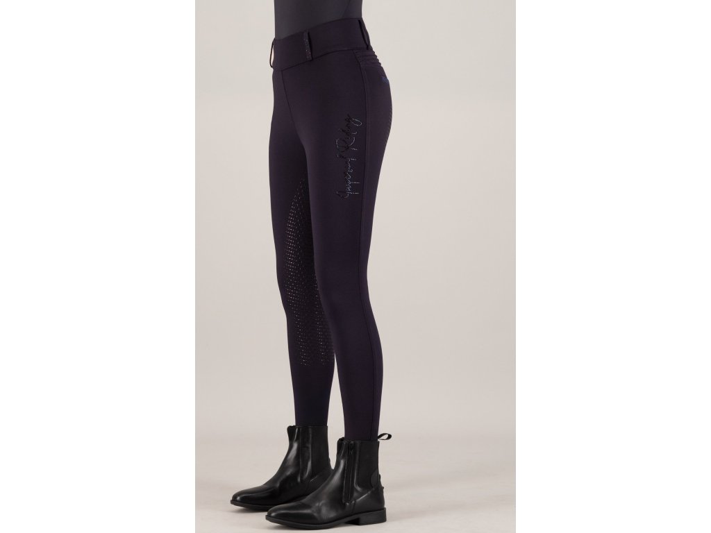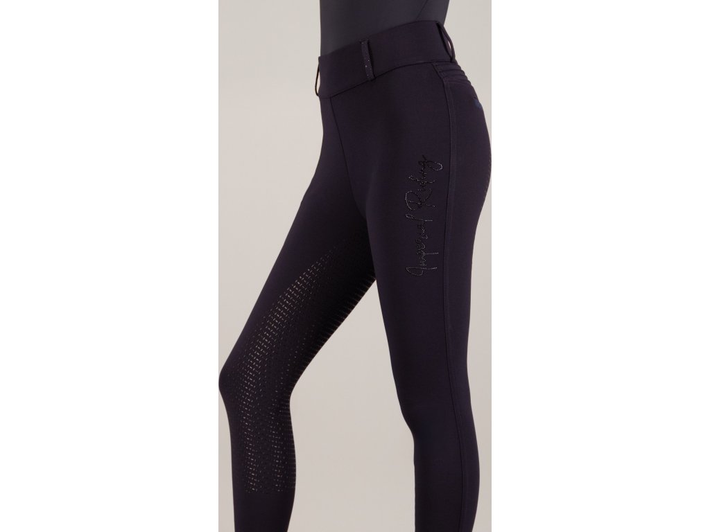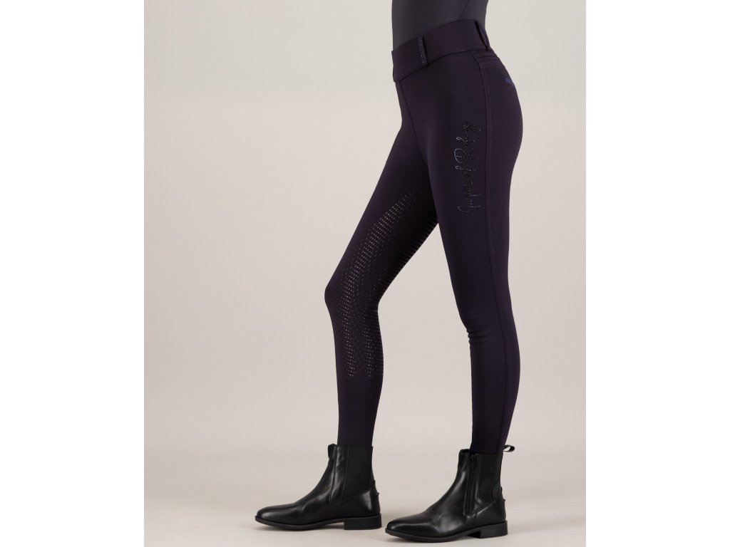 Zimné jazdecké legíny, ktoré sú vyrobené z mäkkej tkaniny s česanou vnútornou vrstvou, ktorá vás dokonale zahreje aj počas chladných dní v stajni či pri zimných tréningoch. Štvorsmerný elastický materiál umožňuje maximálnu voľnosť pohybu a pohodlie, zatiaľ čo silikónový grip po celej dĺžke sedu zaistí stabilný sed v sedle. Majú pútka na opasok a vrecko na telefón pozdĺž stehna. Zdobené decentnými kamienkami a trblietkami. Vysoký pás podčiarkuje ženskú siluetu a poskytuje pohodlie pri jazde.