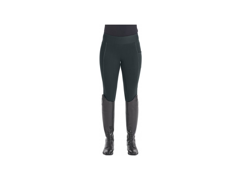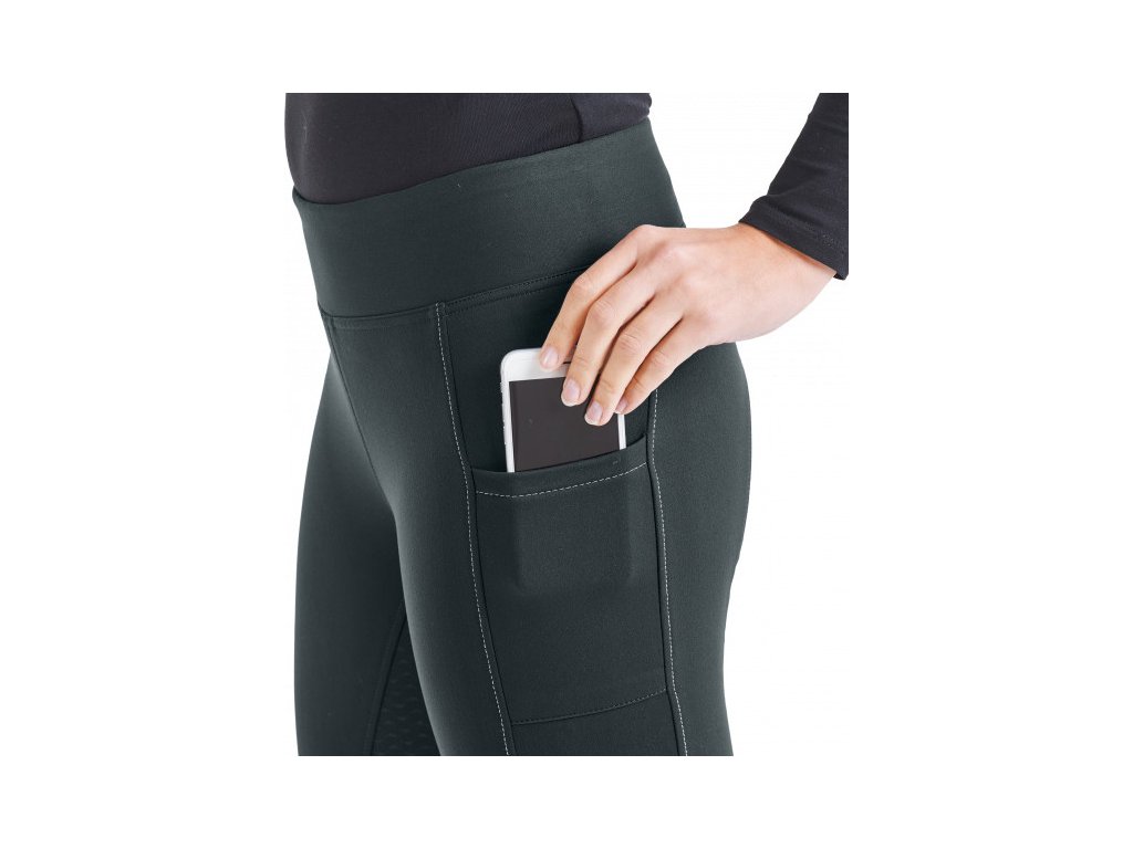 Pohodlné zateplené jazdecké legíny so silikónovým protišmykovým gripom po celej dĺžke sedu. Vrecko na smartphone na ľavom boku. Klasický strih so širokým elastickým pásom a elastickými koncami nohavíc. Možno prať v práčke na 30 °C. Pri tomto produkte odporúčame zvoliť o dve veľkosti väčšiu veľkosť, než je konfekčná veľkosť.