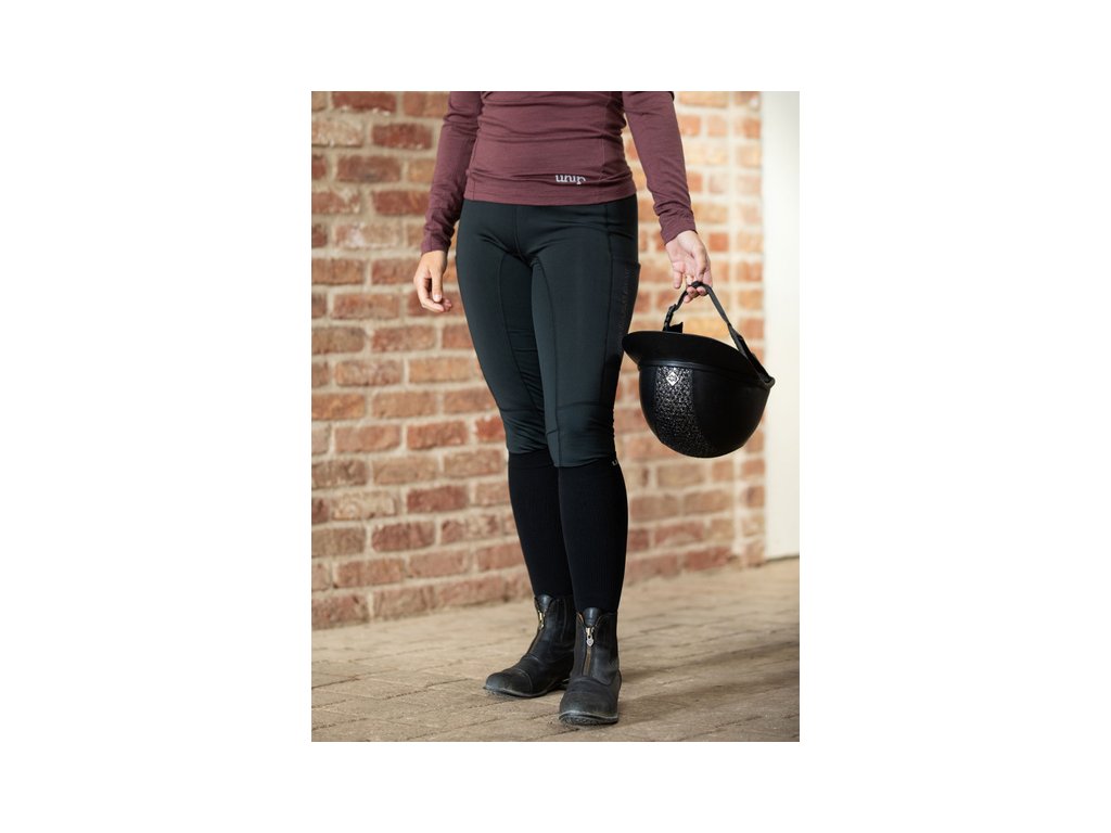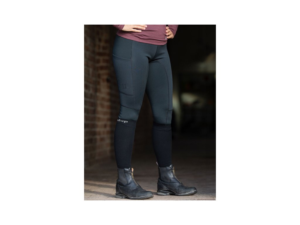 Jazdecké legíny poskytujú vynikajúcu ochranu proti chladu a vetru, takže sú ideálne na chladnejšie dni. S technológiou Windstopper, ktorá sa používa najmä u outdoorového oblečenia. Technológia Windstopper funguje na základe špeciálnej membrány, ktorá blokuje vietor a chráni pred prechladnutím, ale zároveň umožňuje únik prebytočnej vlhkosti z oblečenia. Legíny majú vysoký pás, ktorý poskytuje optimálne pohodlie a udržuje ich na mieste počas tréningu, jazdy na koni alebo chôdze. Praktické vrecká na nohaviciach umožňujú ľahký prístup k telefónu a iným drobnostiam. Majú dizajn bez švov na vnútornej strane nohavíc, ktorý zabraňuje odieraniu pri jazde. Vyrobené z recyklovaného polyesteru v kombinácii so spandexom. Česaný vnútorný materiál udržiava teplo.