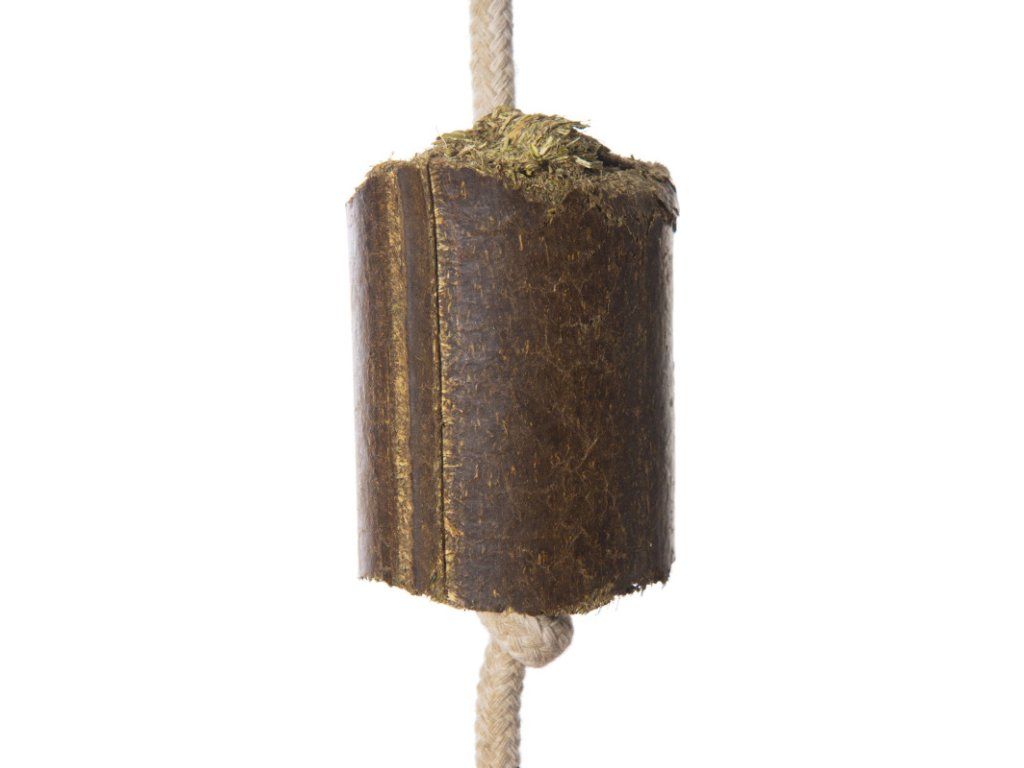 Závesná, zdravá, 100 % prírodná hračka s lucernou a kúskami zeleniny pre kone. Zdravá zábava pre kone. Prírodné ingrediencie s jedinečnou chuťou a starostlivým spracovaním ponúkajú tie najlepšie podmienky pre vysokokvalitný doplnok krmiva. Táto zdravá pochúťka z objemového krmiva je preto veľmi sýta a poskytuje koňom dlhotrvajúcu zábavu. Lucernové bloky majú v strede prevlečené lano a možno ich ľahko zavesiť na box pre kone alebo kdekoľvek vonku. Závesná zdravá pochúťka pre kone má tvrdú konzistenciu a nespôsobuje žiadny prach ani nečistoty - ideálna alternatíva k sieťam na seno. Lahodné pochúťky nielenže prispievajú k dobrej pohode vašich štvornohých priateľov, ale podporujú aj tvorbu slín.