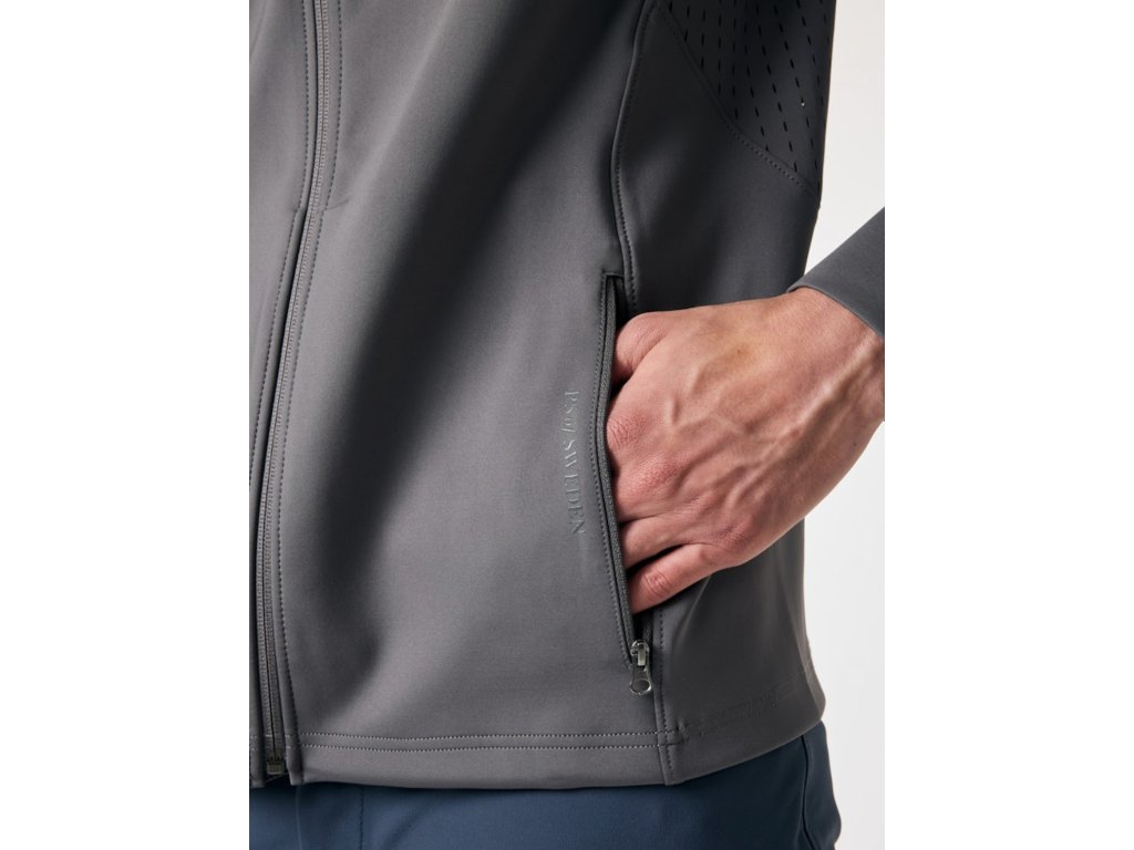 Táto funkčná mikina na zips je navrhnutá pre maximálne pohodlie a výkon. Vyrobená je zo štvorsmernej elastickej tkaniny, ktorá poskytuje výnimočnú flexibilitu a efektívne odvádza vlhkosť, čím vás udrží v suchu a komforte počas jazdy na koni či počas iných vonkajších aktivít. Bočné vložky zo sieťoviny zaisťujú lepšie prispôsobenie a zvýšenú priedušnosť, vďaka čomu je táto mikina ideálnou voľbou pre aktívnych jazdcov. Praktické predné vrecká na zips ponúkajú priestor na drobnosti. Elegantný dizajn dopĺňa tónovaná silikónová potlač loga PS na zadnej strane.