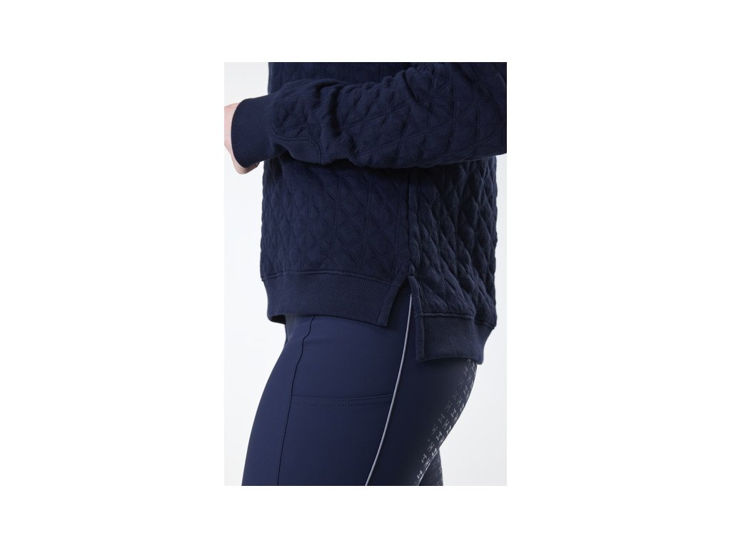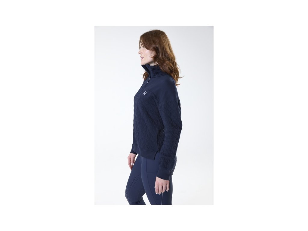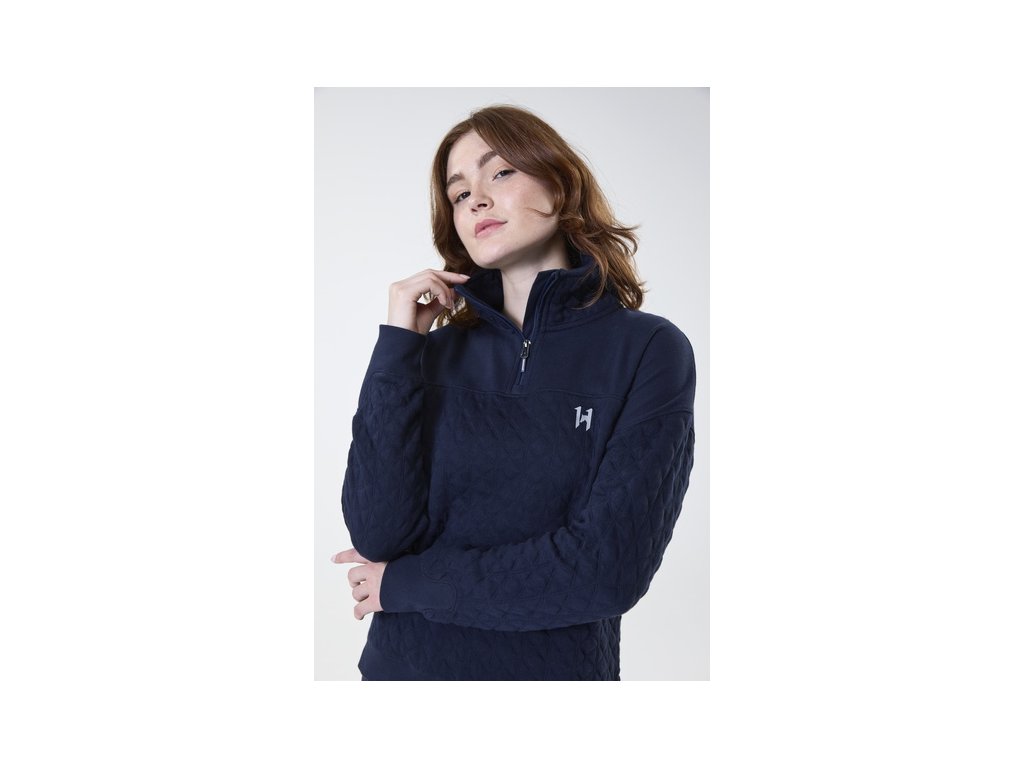 Dámska zimná mikina z príjemnej zmesi bavlny a recyklovaného polyesteru ponúka pohodlnú a ľahkú vrstvu tepla bez zbytočného objemu. Prešívaný dizajn s rebrovaným lemom a manžetami na rukávoch zaisťuje komfort a udržuje teplo. Vysoký golier chráni pred chladom a 1/4 zips umožňuje jednoduché obliekanie. Mikina má voľný strih a poskytuje pohodlie pri športových aktivitách aj počas voľného času.
