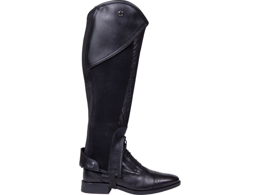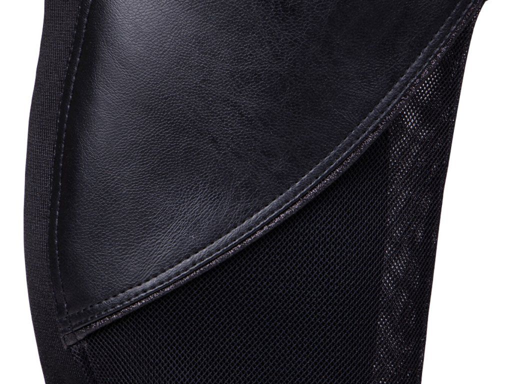 Pohodlné minichapsy vyrobené zo syntetickej kože so sieťovinou. Sieťovina poskytuje priedušnosť a minichapsy sú ideálne na leto. Sú vybavené zipsom na zadnej strane, ktorý je zabezpečený cvokom. Pozdĺž zipsu je elastická vložka, vďaka ktorej sa minichapsy dokonale prispôsobia. Sú zdobené malým kovovým znakom "Q". Možno prať pri 30 °C.