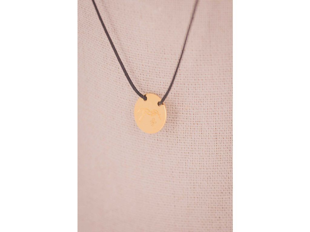 Elegantný náhrdelník Adelya je tvorený jemnou čiernou šnúrkou a drobným zlatým príveskom s logom Penelope. Zapínanie je riešené decentnou zlatou sponou. Tento náhrdelník je ideálny ako na každodenné nosenie, tak aj na zvláštne príležitosti. Dodá vášmu outfitu elegantný a jemne štýlový nádych.