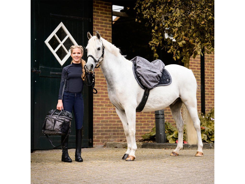 Kvalitný obal na sedlo z vodoodpudivého materiálu, ktorý chráni sedlo pred dažďom a nečistotami. Je vybavený mäkkou fleecovou podšívkou a otvormi na ľahké prevlečenie podbrušníka. Vďaka sťahovacej šnúrke je možné upraviť veľkosť na takmer každé anglické sedlo. Rozmery: dĺžka 80 cm, výška 75 cm.