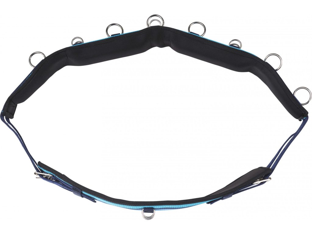 Lonžovací obrušník z pevného polypropylénu s neoprénovým polstrovaním zaručujú pohodlie aj pri dlhšom tréningu. Je vybavený 15 kovovými krúžkami na pripevnenie pomocných oťaží alebo lonžovacích pomôcok. Súčasťou je aj odnímateľný podbrušník s kovovou prackou na jednoduché zapínanie a prispôsobenie veľkosti.