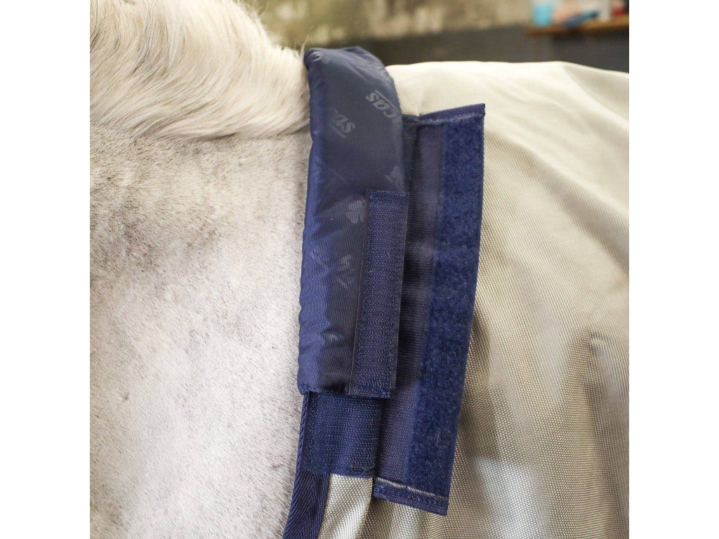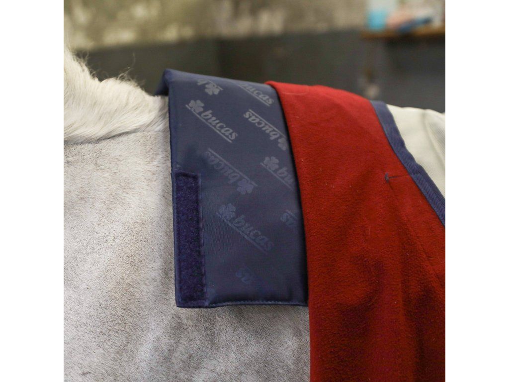 Ochrana kohútika pod deku je kompatibilná so všetkými dekami Bucas, ktoré majú pútka na pripevnenie krčného dielu. Možno ju jednoducho a bezpečne pripevniť k týmto pútkam pomocou suchých zipsov. Pod deku sa skladá naplocho, kde vďaka 300 g mäkkej výplni zmierňuje tlak v oblasti kohútika. Hodvábne hladká podšívka je šetrná ku koži koňa a pomáha udržiavať hrivu aj srsť v dobrom stave. Odporúčame podložku pravidelne prať, pretože nečistoty môžu prispieť k vypadávaniu hrivy. Poskytuje koňovi ešte väčšie pohodlie. Univerzálna veľkosť 44 × 28 cm.