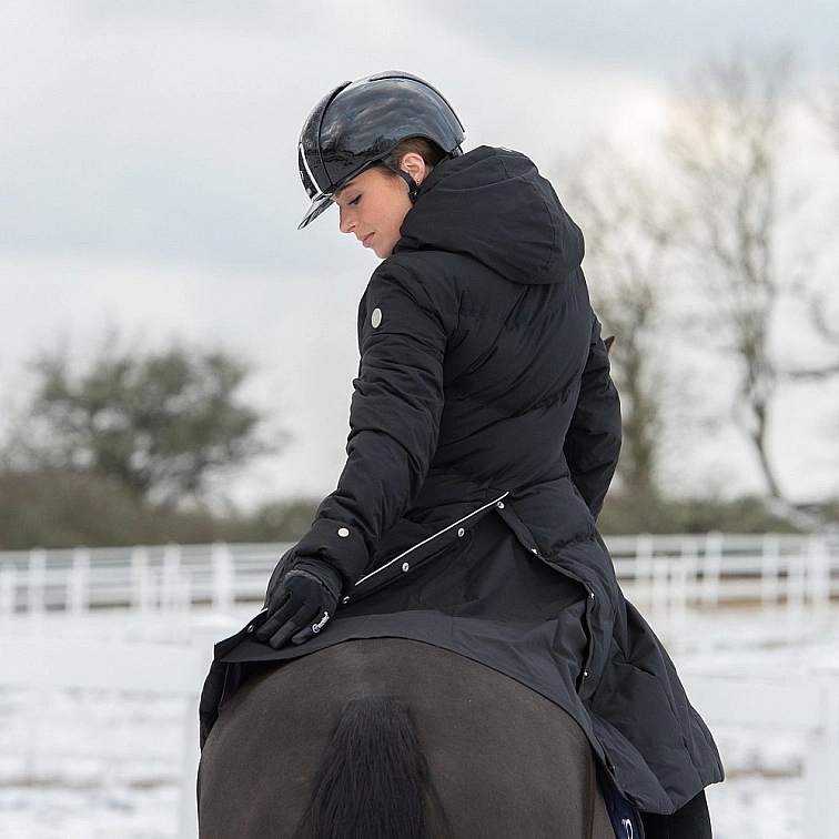 Vďaka svojej izolácii je kabát Ally mimoriadne pohodlný, teplý a je vhodný ako na jazdenie, tak aj na prácu okolo koní. V zadnej časti má rozparky, ktoré sa dajú rozopnúť a môžete si tak užiť pohodlnejšiu jazdu v sedle. Skvelá je aj odnímateľná kapucňa, dvojcestný zips, vyšší mäkký golier a dve priestranné vrecká podšité fleecom.