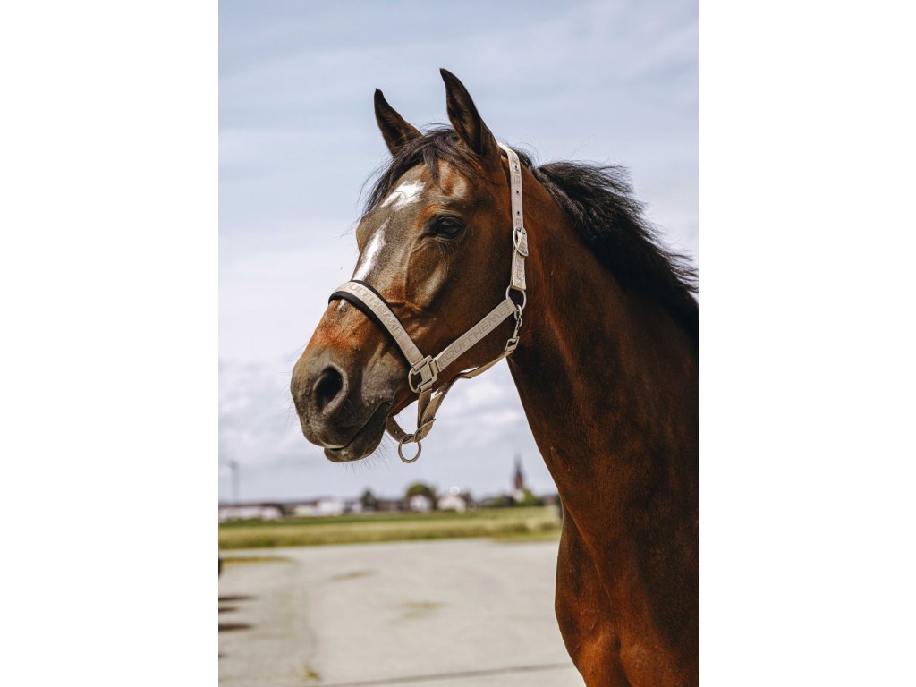 Kvalitná, nastaviteľná a príjemná ohlávka s elegantným žakárovým značením a prackami s logom Equithème. Pre maximálny komfort sú nátylník aj nánosník lemované mäkkým neoprénovým vankúšikom proti odreninám. Ohlávka je ľahko nastaviteľná a vybavená praktickým zapínaním na karabínku. Vyrobená z odolného polyesteru.