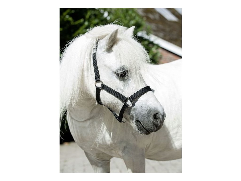 Nylonová ohlávka HKM špeciálne navrhnutá pre kone typu shetty. Veľkosť možno nastaviť podľa potreby pomocou posuvnej kovovej spony. Ohlávka má kvalitné kovanie striebornej farby.