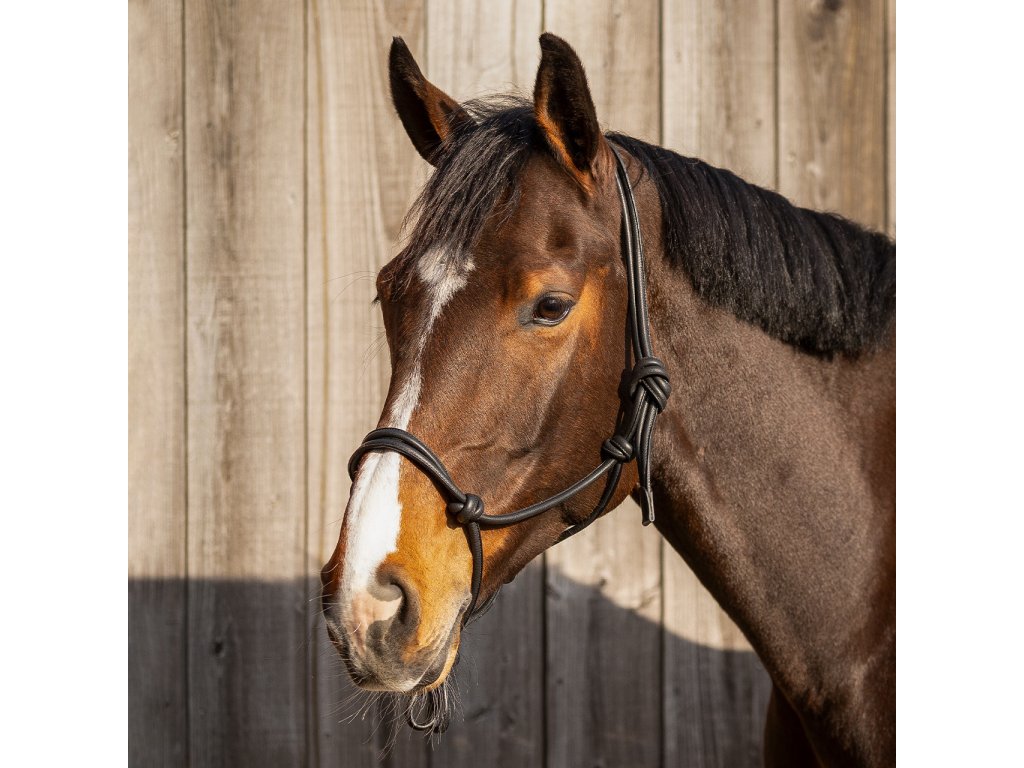 Kožená povrazová ohlávka, ktorá spája všestrannosť klasickej povrazovej ohlávky s elegantným vzhľadom. Vhodná na prácu zo zeme aj jazdenie bez zubadla. Je vybavená 5 mm hrubým polyesterovým povrazom pre vyššiu pevnosť a udržanie tvaru. Pretože sa povrazová ohlávka pri ťahu nepretrhne, nie je vhodná na uväzovanie koňa bez dozoru, na prepravu ani na pastvu.