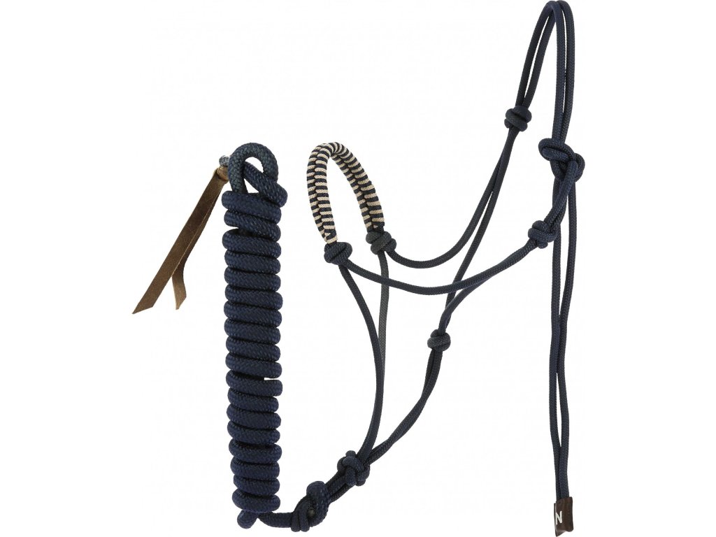 Praktická sada povrazovej ohlávky a vodítka určená na prácu zo zeme. Povrazová ohlávka je vyrobená z odolného polypropylénu a vďaka strategicky umiestneným uzlom pôsobí presne na tlakové body. Dvojito pletený nánosník z 14 mm lana zaisťuje vyšší komfort, pevnosť a dlhú životnosť. Ohlávka je vhodná na jemnú a cielenú prácu s koňom. Súčasťou sady je vodítko s dĺžkou 3,7 m. Vodítko je vybavené upevňovacím krúžkom na strane ohlávky a dvojitým koženým zakončením.