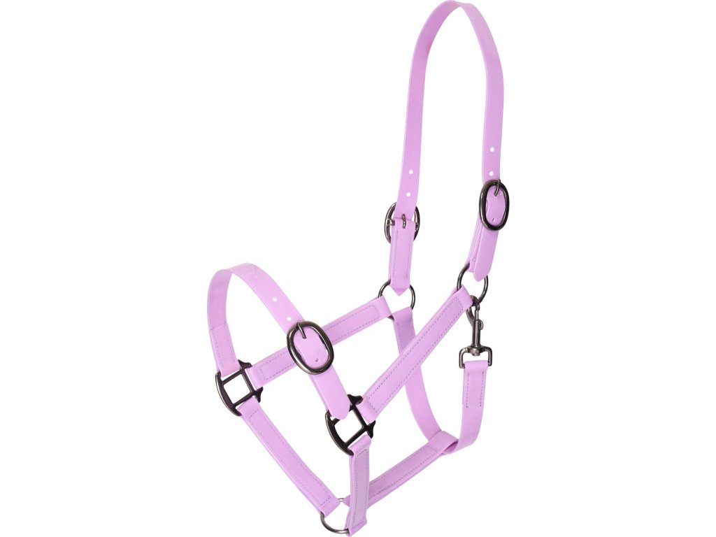Ohlávka, ktorá spája štýl, funkčnosť a mimoriadnu odolnosť. Vďaka lesklému povrchu a zábavným farebným variantom dodá vášmu koňovi štýlový a elegantný vzhľad. Vyrobená z polyesteru, ktorý je pokrytý PVC materiálom. Táto kombinácia materiálov je pevná a vodotesná, spoľahlivo odoláva náročným podmienkam v stajni aj vo výbehu. Rýchlo schne a ľahko sa čistí. Materiál odpudzuje nečistoty.