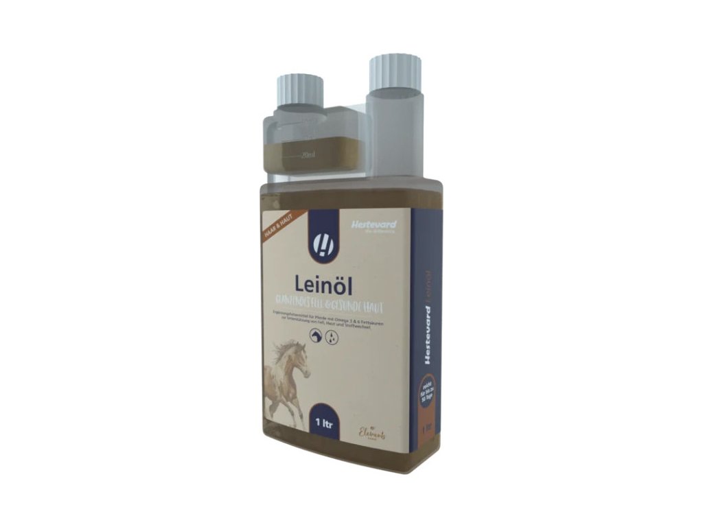 Za studena lisovaný ľanový olej, 100% čistý. Olej je vhodný pre podporu zdravej srsti, zdravej kože a zdravého tráviaceho systému a metabolizmu. Tekuté doplnkové krmivo, ktoré možno pridať do dennej kŕmnej dávky. Vynikajúci zdroj mastných kyselín (omega 3 a 6) a bohatý na kyselinu linolovú. Ľanový olej obsahuje vitamín E a možno ho tiež použiť ako zvýrazňovač chuti alebo na maskovanie iných chutí. Obzvlášť prospešný pre vyberavé kone.