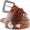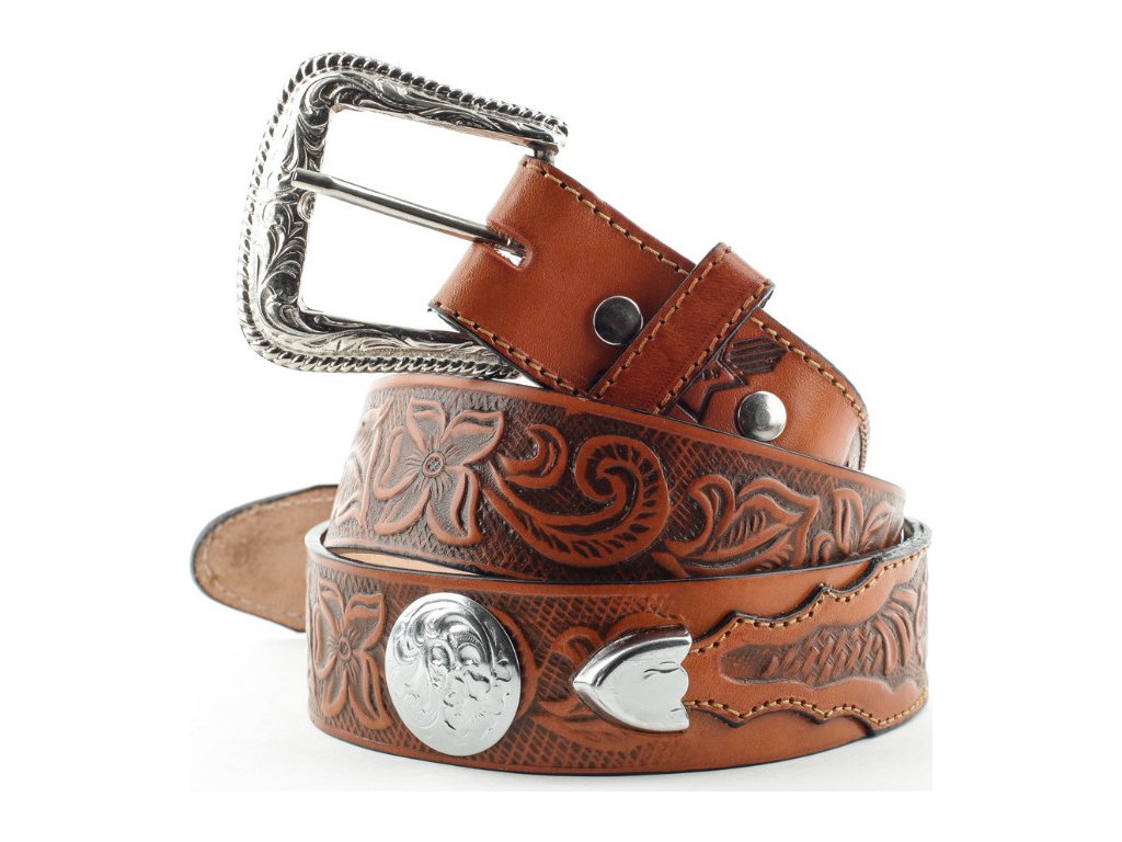 Westernový opasok z vysokokvalitnej hovädzej kože s vymeniteľnou prackou. Opasok je zdobený kvetinovou razbou a striebornými prvkami. Opasky Stars & Stripes sa môžu pochváliť dokonalým spracovaním s prepracovanými prvkami.