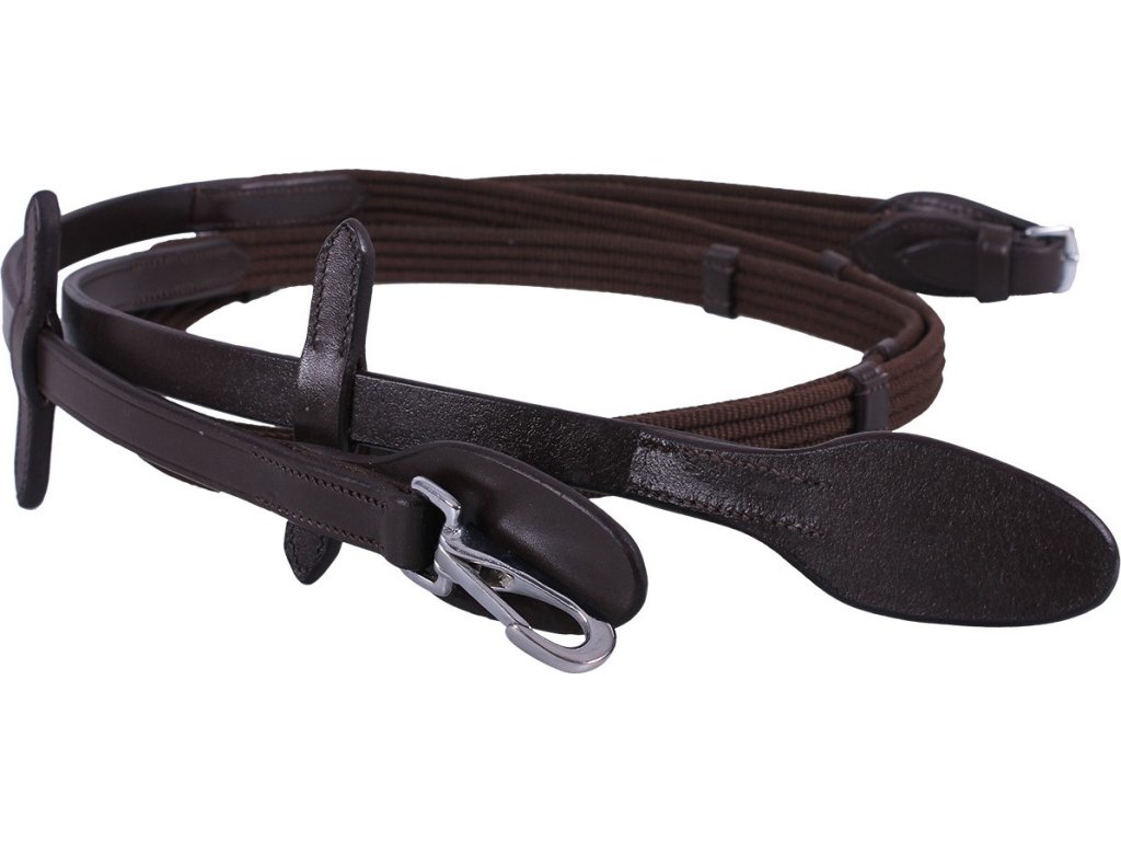 Veľmi kvalitné oťaže so striebornými prackami z nerezovej ocele, obsahujú klipy, ktoré sa dajú ľahko pripojiť a odpojiť. Užitočné napríklad keď chcete koňa polonžovať na uzdečke, jednoducho a rýchlo oťaže odopnete. K dispozícii v čiernej a hnedej farbe. Dĺžka: PONY: 125 cm, FULL: 140 cm.