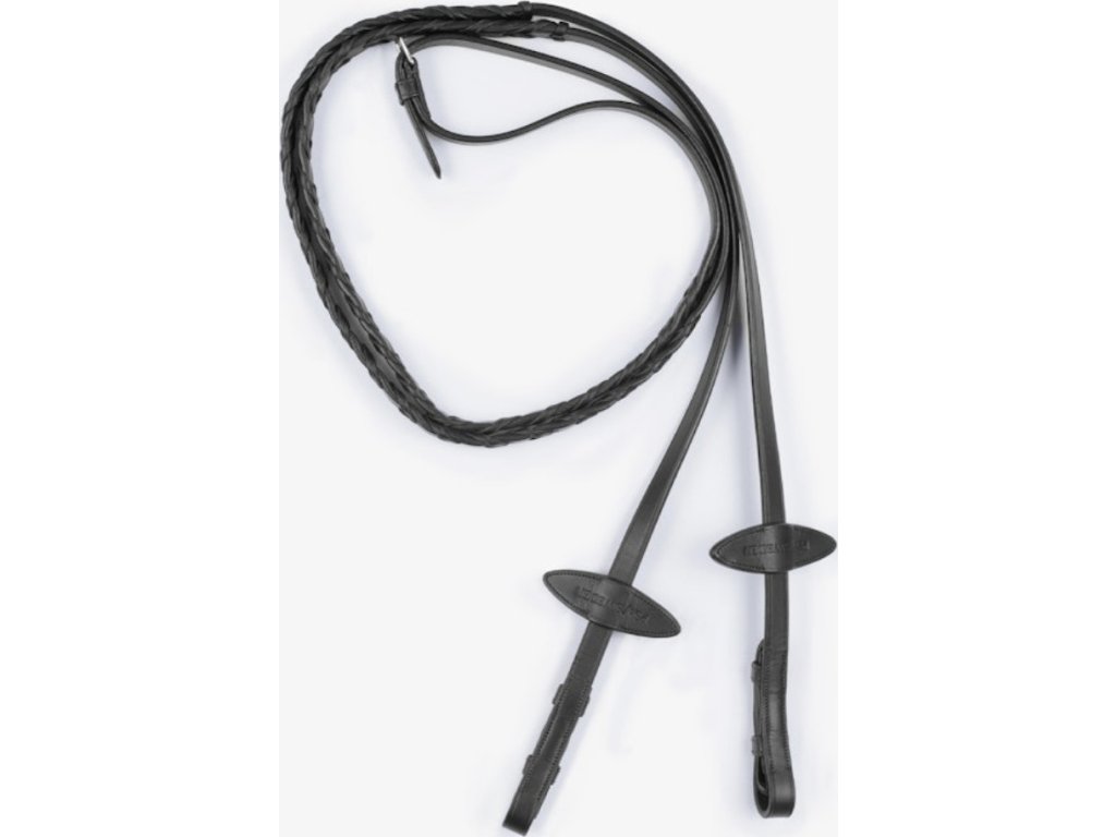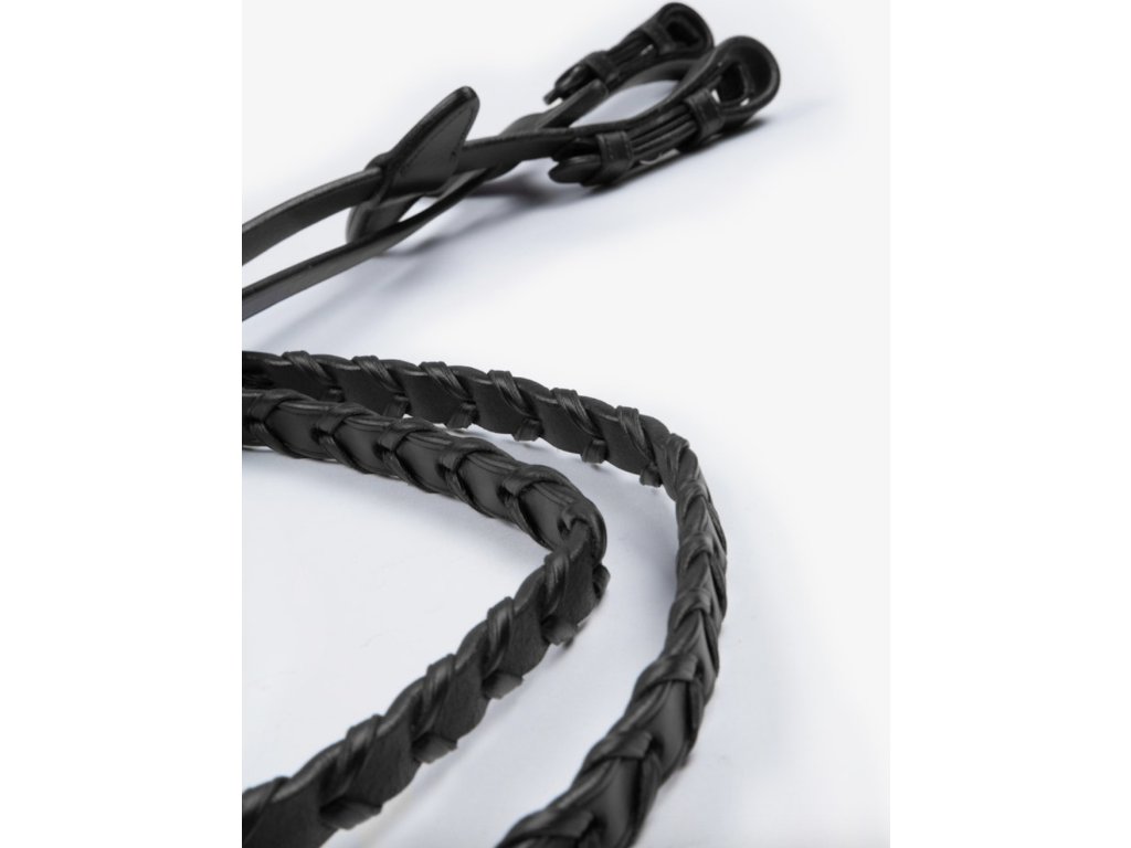 Štýlové kožené oťaže s prepletom. Vhodné na jazdecké hony. V strede majú pracku a v prípade potreby sa dajú odopnúť. Oťaže sú vybavené systémom Cradles™, ktorý poskytuje jemnejší kontakt medzi hubou a rukou jazdca. Systém Cradles™ sa dá od oťaží odopnúť. Vybavené strieborným kovaním. Vyrobené z talianskej kože.