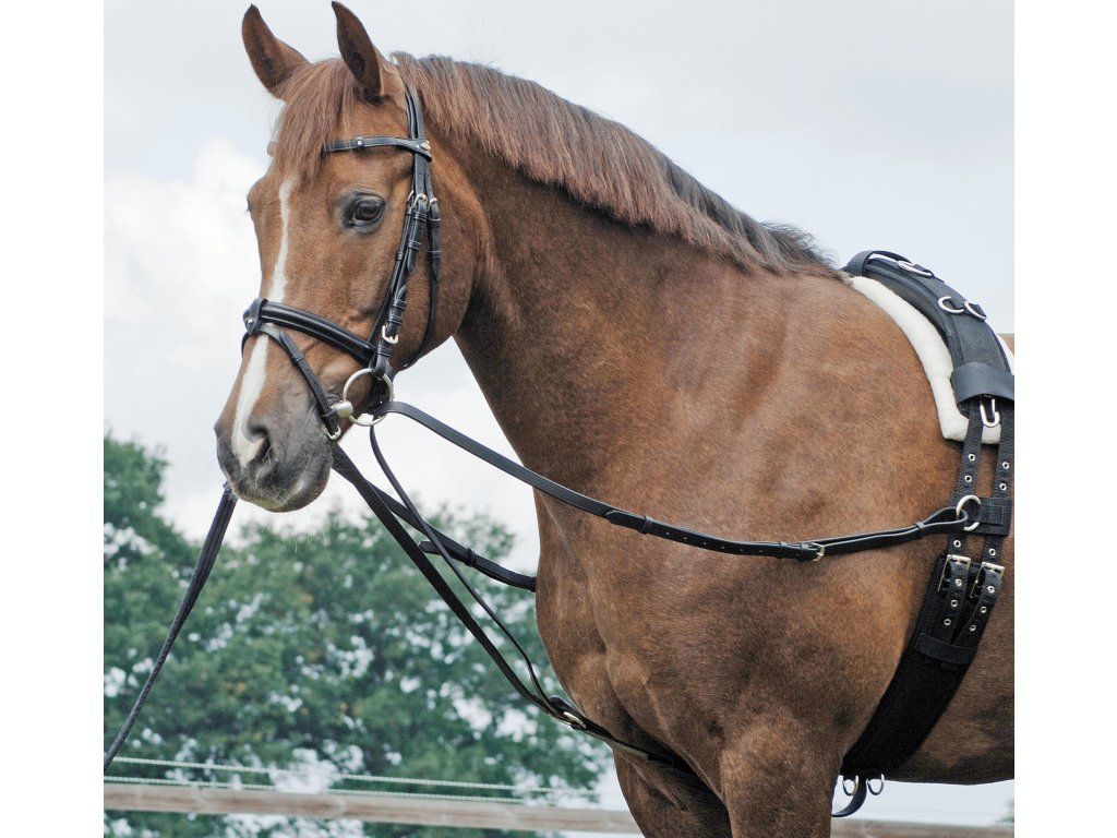 Vyväzovacie pomocné oťaže, nazývané aj viedenské oťaže. Vyrobené z vysokokvalitnej kože. Dĺžkovo nastaviteľné spodné a bočné popruhy. Nerezové pracky.