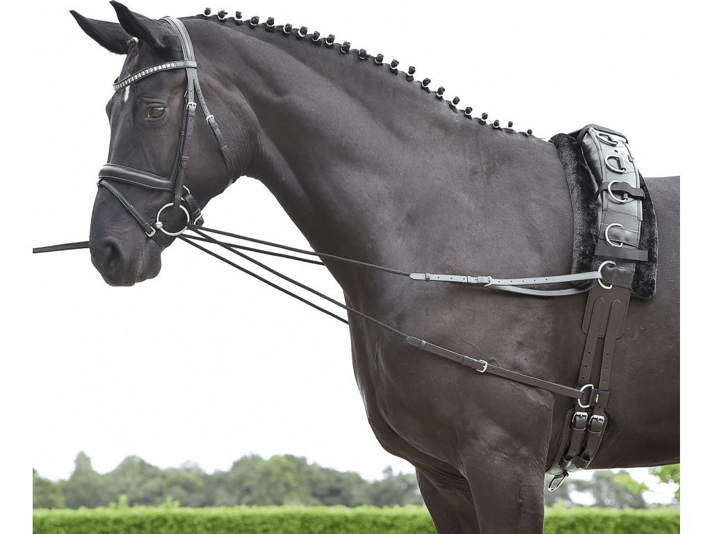 Pár vyväzovaích oťaží. Oťaže sú čiastočne vyrobené z dlhej okrúhlej šnúry, aby sa zabránilo vysokému treciemu odporu v krúžkoch zubadla. Konce sú z kvalitnej kože s možnosťou nastavenia požadovanej dĺžky. Nerezové pracky. Veľkosť COB/FULL, dĺžka: 190-220 cm.