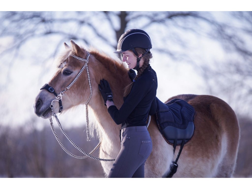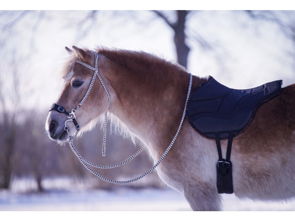 Jezdecký pad Markus F.R.A poskytuje výborný kontakt medzi jazdcom a koňom. Jazda bez sedla je pre koňa aj jazdca často vítanou zmenou každodenného tréningu. Jeho anatomický tvar sa ľahko prispôsobí tvaru chrbta každého koňa, podporuje správny sed a poskytuje oporu. Vrchná strana je potiahnutá semišovým materiálom, takže je pad pre jazdca protišmykový. Je vypodložený vrstvou Sympa materiálu, ktorý dokonale odvádza pot. Sympa materiál je protišmykový neoprén, ktorý poskytuje veľmi dobrú priedušnosť a stabilitu. Okrem toho výborne reguluje teplotu a odvádza vlhkosť, je antibakteriálny a pre koňa veľmi príjemný. Vnútorná výplň je vyrobená z pevnej pamäťovej peny s vysokou hustotou, vďaka ktorému je pad pre jazdca pohodlný, mäkký a tlmí nárazy. Tento model má voľný chrbtový kanál. Ďalej je vybavený praktickým pútkom, ktoré sa dá ľahko odopnúť. Dodáva sa bez podbrušníka. Veľkosť FULL: 51 x 53 cm. Skvelý pomer ceny a kvality od holandskej značky F.R.A.