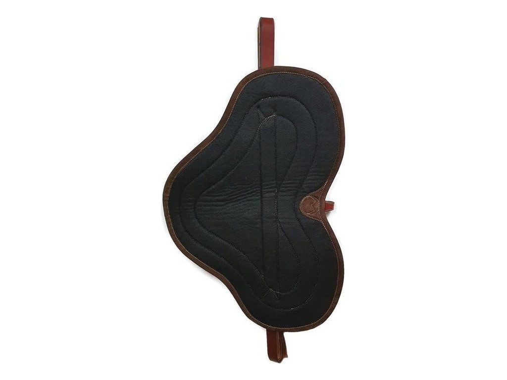 Jazdecký pad zaisťujúci výborný kontakt medzi jazdcom a koňom. Jazda bez sedla je pre koňa aj jazdca často vítanou zmenou každodenného tréningu. Spodná časť je podšitá lekárskou plsťou, ktorá je pre konský chrbát veľmi pohodlná a je ideálna pre citlivé kone. Tento pad umožňuje veľmi blízky kontakt s koňom a je vhodný pre bezkohútikové kone. Horná časť je vyrobená zo semišového materiálu, ktorý je protišmykový a veľmi ľahký na údržbu. Vybavený je koženou rukoväťou na pridržanie jazdca, koženými popruhmi a dvoma D-krúžkami. Dodávaný BEZ PODBRUŠNÍKA. K dispozícii len vo veľkosti FULL a v mnohých krásnych farbách. Celková dĺžka jazdeckého padu: 54 cm.