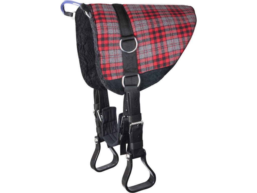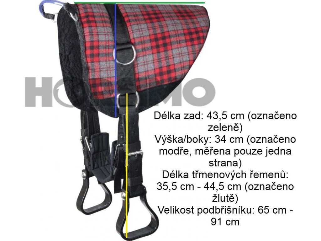 Mäkký westernový pad s pevnými strmeňovými remeňmi a strmeňmi. S pútkom na držanie. Dodávaný s podbrušníkom.