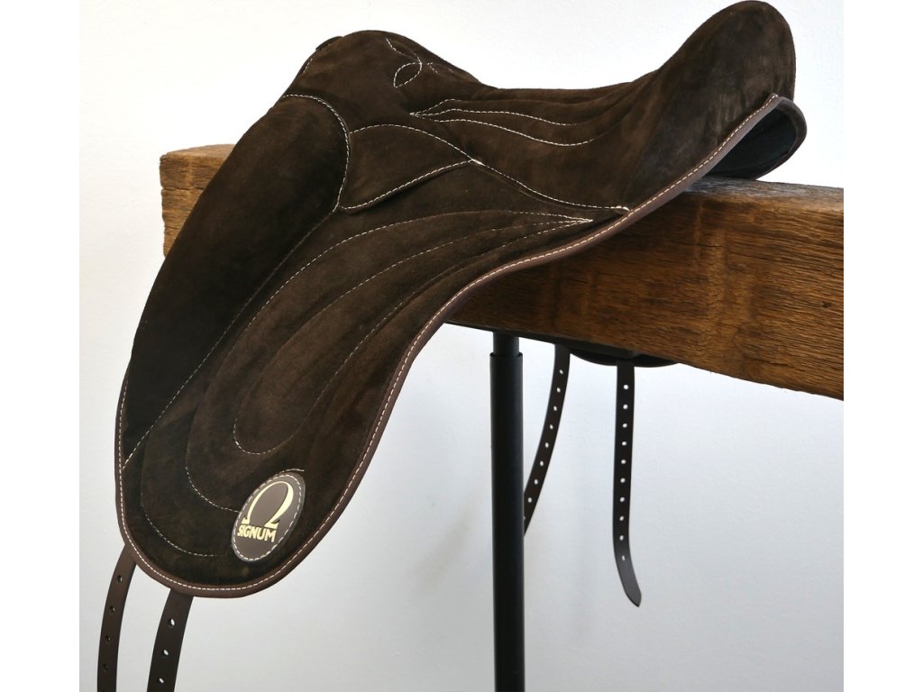 Paddle od výrobcu Signum spája výhody jazdeckého padu a sedla, zlepšuje harmóniu a komunikáciu medzi jazdcom a koňom. Anatomický tvar a flexibilná konštrukcia zaručujú prirodzené prispôsobenie sa chrbtu koňa. Komoru možno upraviť podľa individuálnych potrieb pomocou 12 mm kľúča. Paddle prináša úplne nový pocit z jazdenia. Umožňuje použitie strmeňových remeňov a strmeňov, čím jazdcovi poskytuje maximálne pohodlie a stabilitu. Špeciálne vyvinutý systém odpruženia rovnomerne rozkladá tlak a bezpečne uchycuje strmene. Vďaka pohodlnému polstrovaniu poskytuje nielen pohodlie, ale aj maximálny kontakt s koňom. Vysokokvalitný semišový kožený povrch poskytuje výnimočne bezpečný sed, či už jazdíte v rajtkách s koženým sedom alebo v bežných džínsoch (rajtky s gripom neodporúčame kvôli zvýšenému riziku opotrebovania kože). Semišová úprava poskytuje nielen vynikajúcu priľnavosť, ale podporuje aj pokojný sed a neustály kontakt s koňom aj v dynamických momentoch. Mierne vyvýšené sedenie v zadnej časti podporuje vzpriamené držanie tela.Pohodlné kolenné opierky pomáhajú udržať dlhú nohu a zabraňujú jej vyťahovaniu nahor. Na rovnomerné rozloženie tlaku možno Paddle kombinovať s Velcro pads, teda vankúšmi na suchý zips, ktoré fungujú podobne ako sedlové vankúše u klasických sediel. Tieto vankúše sú súčasťou balenia. Celý set je v hnedej čokoládovej farbe.