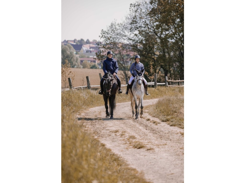 Teplá jazdecká parka, ktorá je nepremokavá a vďaka starostlivému spracovaniu poskytuje maximálne pohodlie aj ochranu v nepriaznivých podmienkach. Hlavná tkanina je laminovaná, čo zaisťuje vodoodolnosť až do 5 000 mm a zároveň priedušnosť 5 000 MVTR. Vonkajší povrch je vybavený odolnou vodoodpudivou úpravou DWR bez obsahu PFC, ktorá účinne odpudzuje vodu. O teplo sa stará izolácia z polyesterového materiálu, zatiaľ čo elastický materiál umožňuje voľný pohyb. Bunda má vodotesné hlavné švy aj predný zips, odnímateľnú kapucňu so systémom nastavenia okolo hlavy a praktické predné vrecká na zips. Pre ešte väčší komfort je vybavená bočnými rozparkami, ktoré uľahčujú manipuláciu a pohyb. Nechýba pružné zakončenie manžiet, vnútorné vrecko na zips, ani chránič brady.