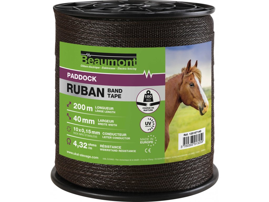 Páska k elektrickému ohradníku o šírke 40 mm a dĺžke 200 m je vyrobená z kvalitného materiálu s vodivými prvkami tvorenými nerezovým drôtom 10 x 0,15 mm. Ponúka záťaž pri pretrhnutí 180 kg a odpor 4,20 Ω/m. Páska je vhodná na použitie na pastvinách pre kone aj ďalšie hospodárske zvieratá.