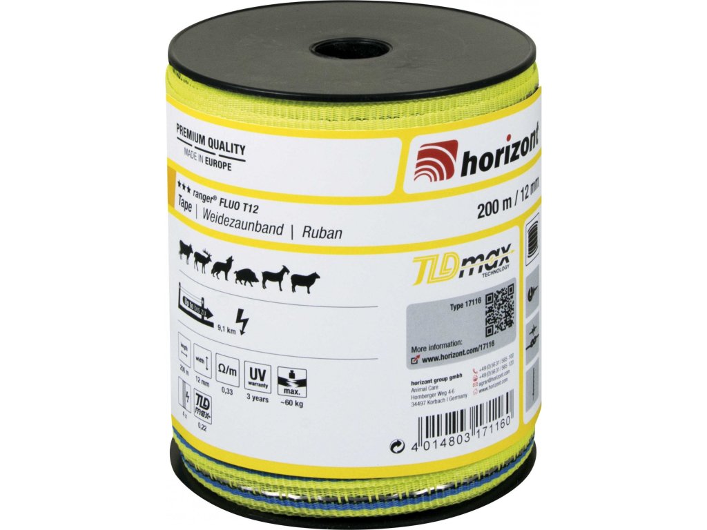 Páska k elektrickému ohradníku Ranger T12 Horizont, 200 m, 12 mm, neon yellow
