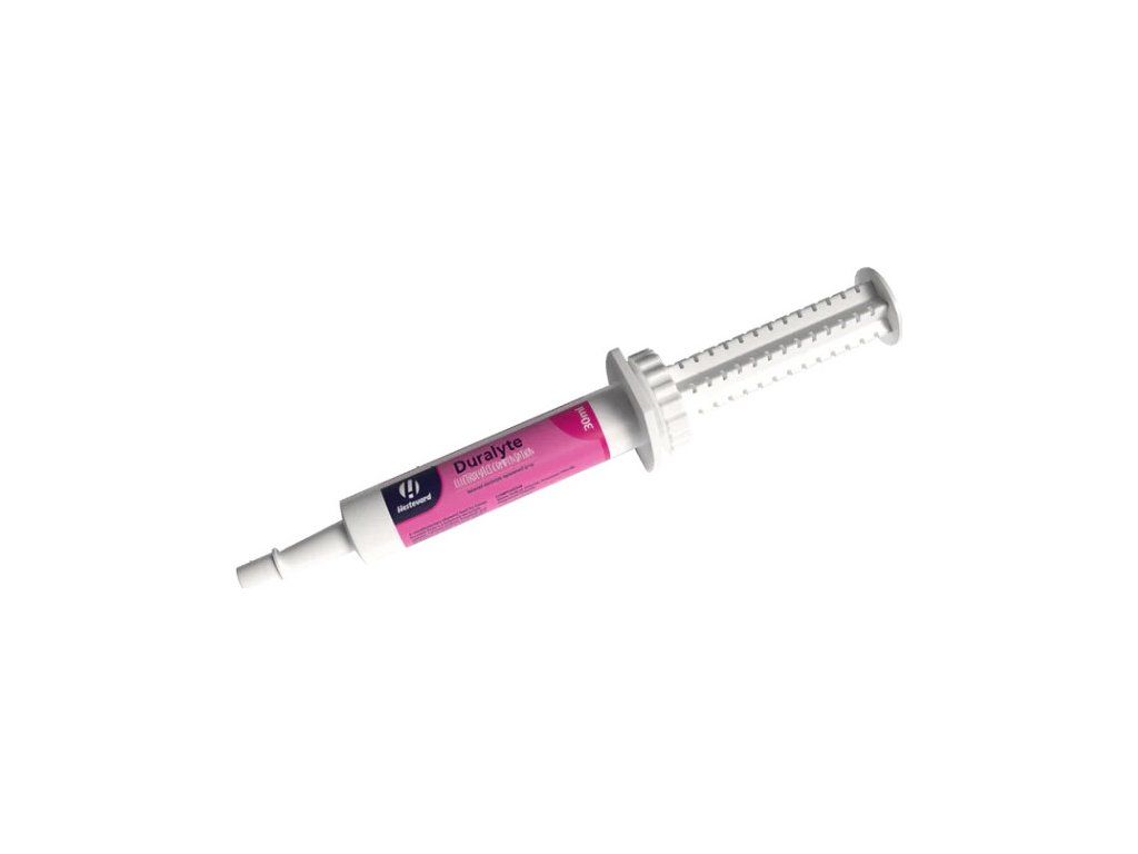 Duralyte pasta je vyvážená náhrada stratených elektrolytov tou najrýchlejšou možnou formou. Obsahuje sodík, draslík a horčík, ktoré nahrádzajú telesné soli stratené silným potením počas intenzívneho tréningu, pretekov alebo v teplom počasí. Doplnkové krmivo pre kone.