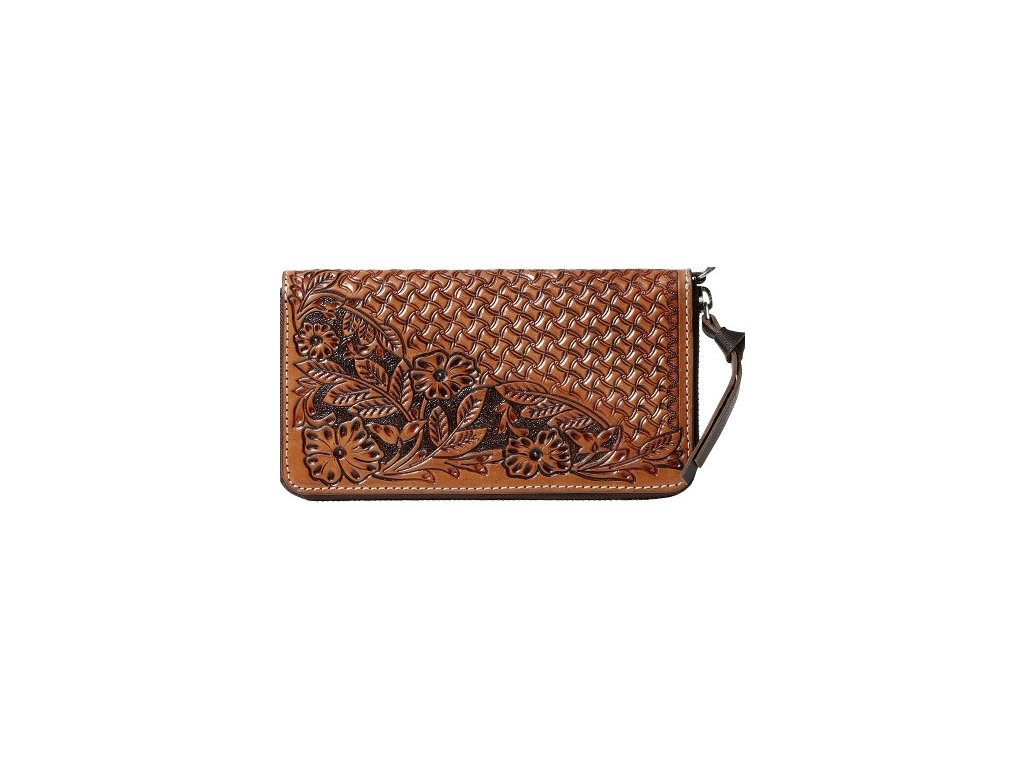 Vysokokvalitná dámska peňaženka z ručne dierovanej hovädzej kože. Vnútorné malé vrecko so zipsom na mince a ďalšie praktické vrecká na karty a bankovky.