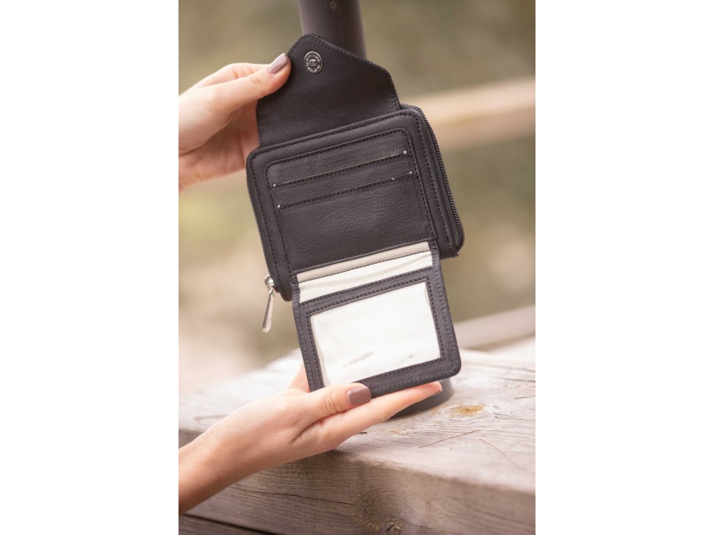 Štýlová peňaženka Clémence vyrobená z kvalitnej hovädzej kože. Ponúka vrecko so zipsom na mince a štyri priehradky na karty. Ďalej samostatnú časť so zapínaním na patentku, ktorá obsahuje ďalšie tri sloty na karty a priehľadné okienko na fotografie alebo drobné dokumenty. Chlopňa tejto časti je z trblietavej kože, ktorá dodáva peňaženke jedinečný šmrnc. Vďaka kompaktným rozmerom sa ľahko zmestí do každej kabelky.
