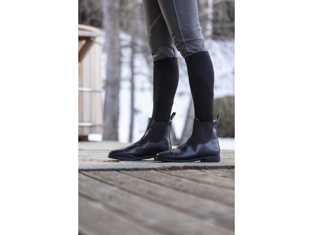 Zimné perka First sú praktické a pohodlné jazdecké topánky ideálne do chladného počasia. Sú vyrobené zo syntetického materiálu a majú vnútornú hrejivú podšívku zo syntetického barančeka, ktorá udržuje nohy v teple aj počas zimných dní. Zosilnená zadná časť zvršku zvyšuje odolnosť a stabilitu topánky pri nosení aj jazde na koni. Mäkká stielka z EVA peny zabezpečuje dobré tlmenie nárazov a komfort pri chôdzi, zatiaľ čo gumová podošva poskytuje spoľahlivú priľnavosť.