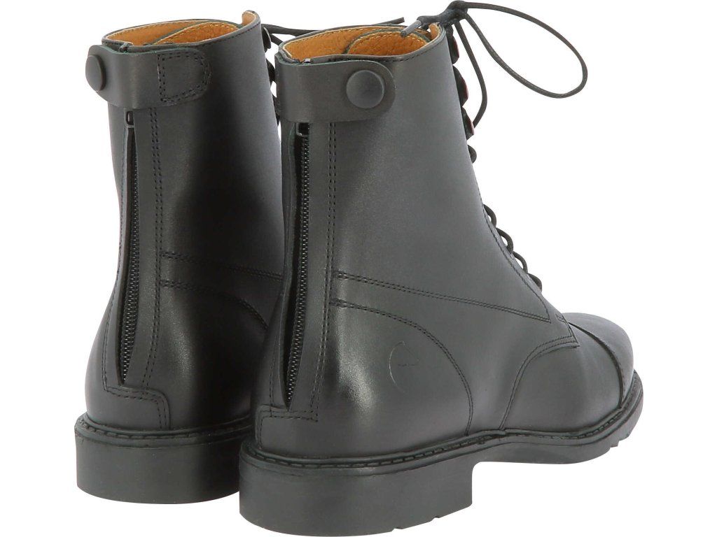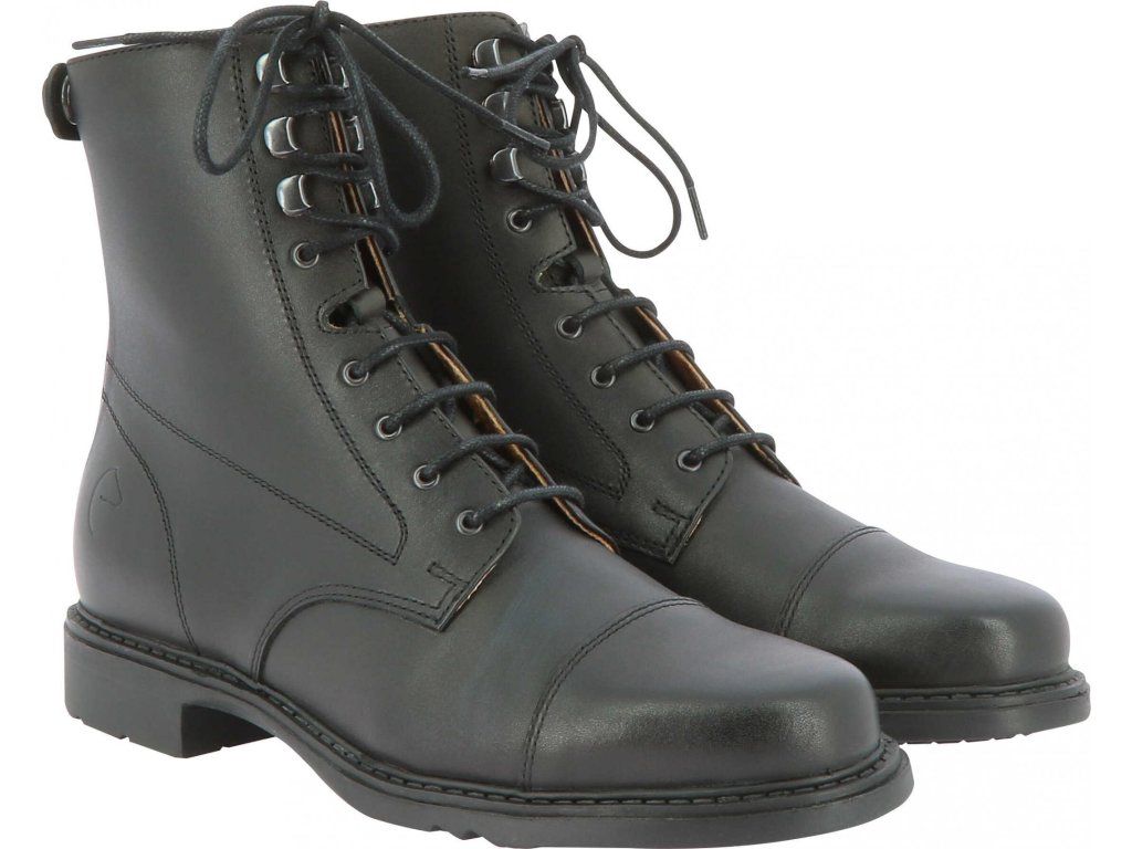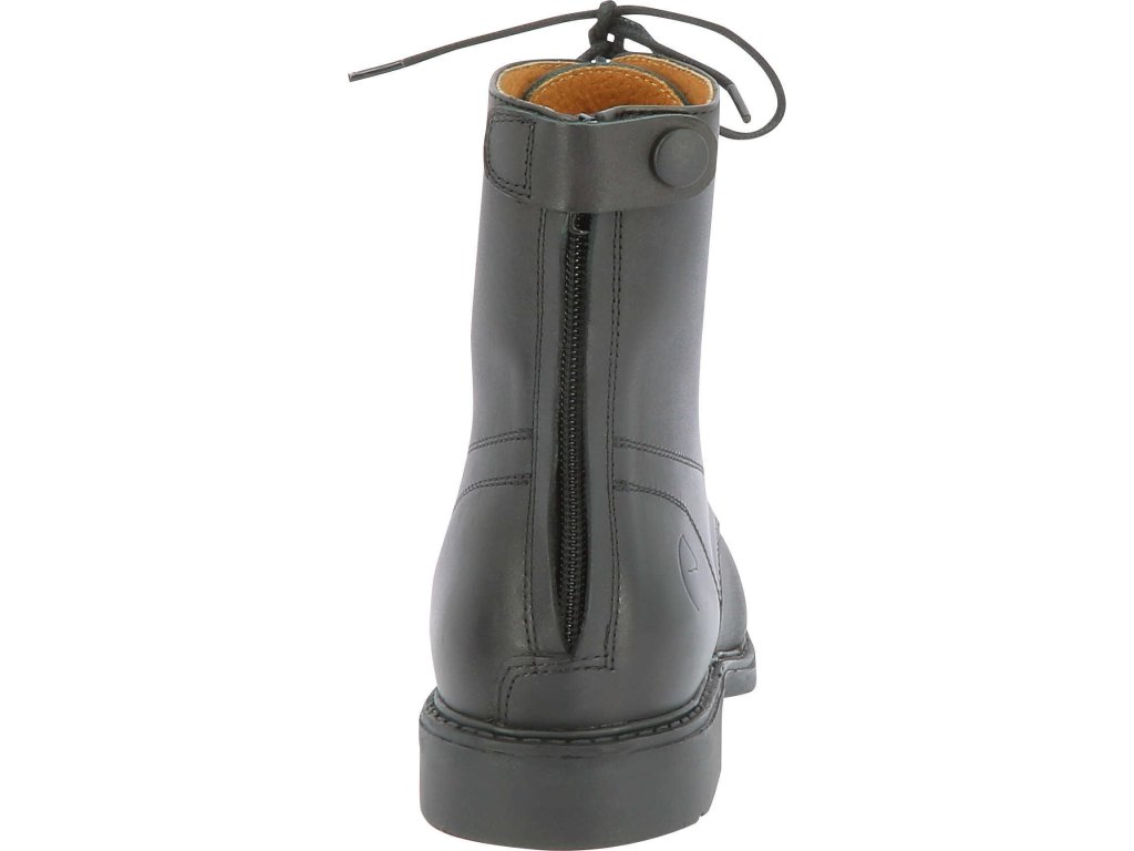 Kožené jazdecké perka Dandy sú pohodlné a odolné topánky určené na každodenné použitie v stajni aj pri jazdení. Kvalitný zvršok z hovädzej kože zaisťuje dlhú životnosť a elegantný dizajn. Vnútorná podšívka z bravčovej kože prispieva k vyššiemu komfortu pri nosení. Praktické šnurovanie s háčikmi v hornej časti umožňuje presné prispôsobenie nohe a zips YKK na zadnej strane päty uľahčuje obúvanie aj vyzúvanie.
