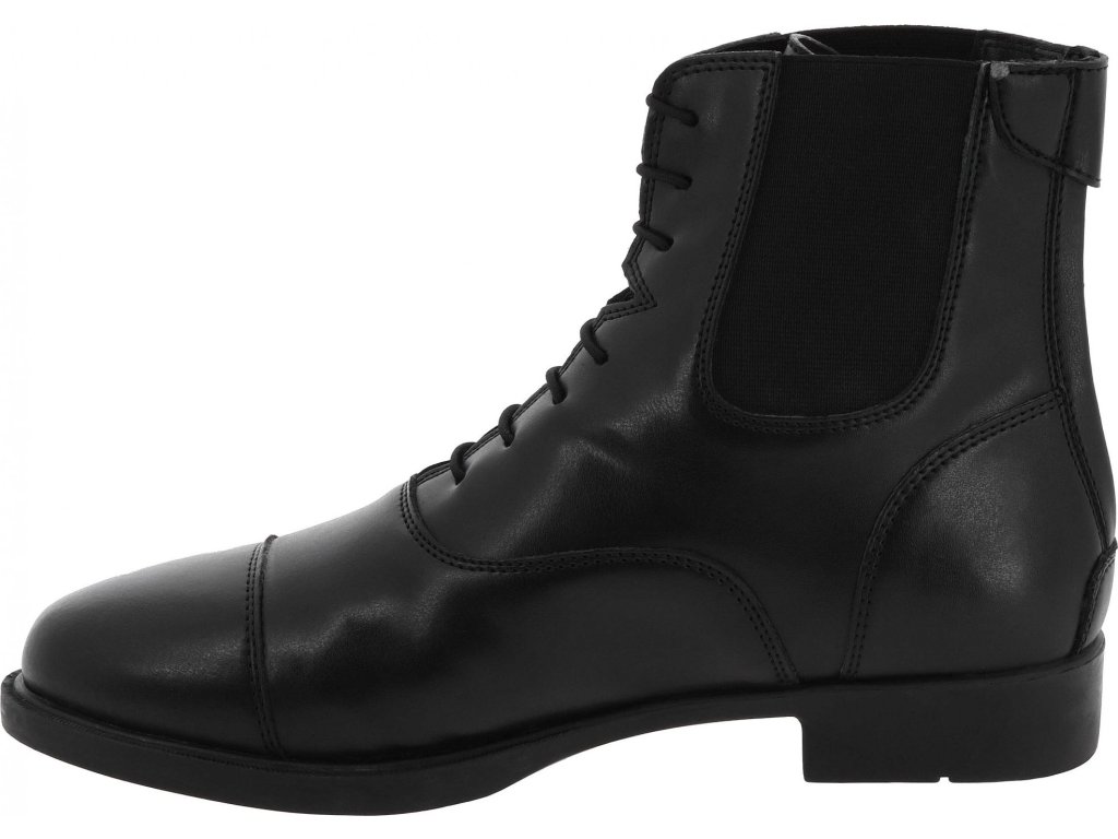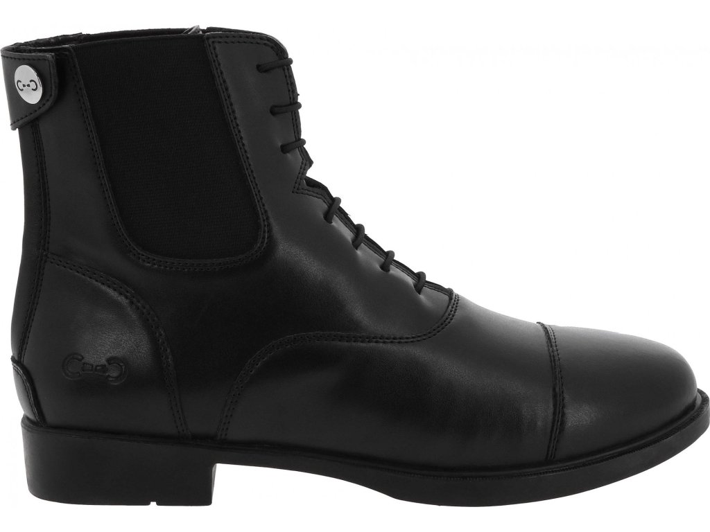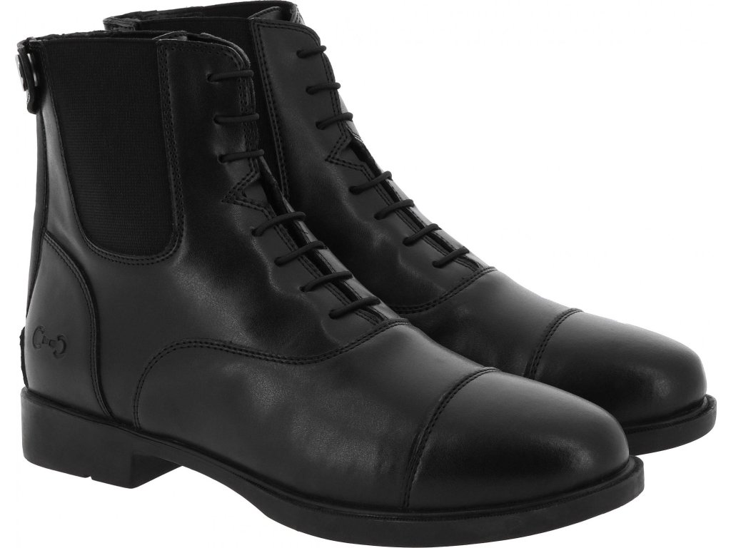 Pohodlné šnurovacie perka vyrobené zo syntetického materiálu, ktorý je nenáročný na údržbu a vhodný na každodenné použitie v stajni aj pri jazdení. Vnútorná sieťová podšívka zaisťuje lepšiu priedušnosť a komfort pri nosení. Zapínanie je riešené zadným zipsom YKK, ktorý je krytý ochrannou légou so zapínaním na cvok. Vďaka tomu je obúvanie rýchle a zároveň je zips chránený proti nečistotám a vlhkosti. Stielka z EVA peny poskytuje mäkký došľap a tlmí nárazy. Gumová podrážka zaisťuje dobrú priľnavosť a stabilitu.