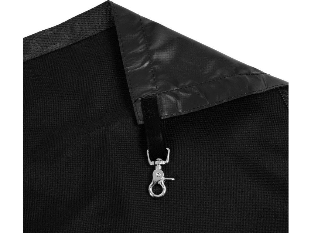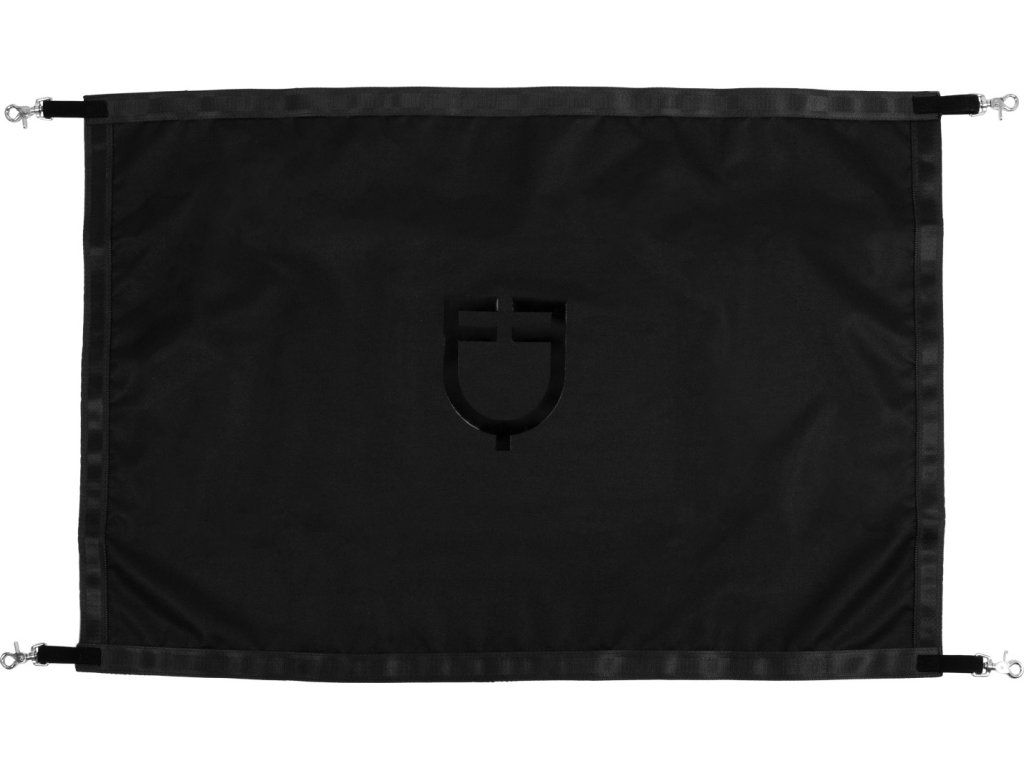 Plachta na dvere z vodoodpudivého polyesterového materiálu. Do dverí sa pripevňuje pomocou štyroch karabín z nerezovej ocele. Zdobená silikónovým logom Equestro. K dispozícii v dvoch farbách. Veľkosť 105 x 69 cm.