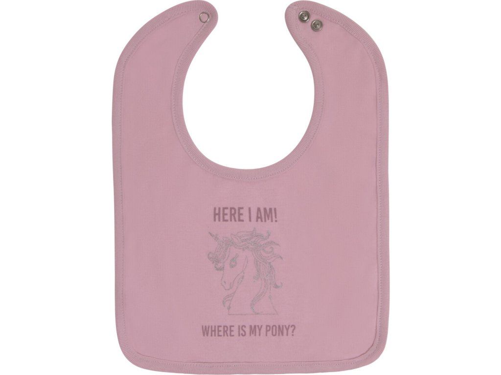 Roztomilý podbradník s vtipným textom a motívom jednorožca. Zapínanie pomocou patentiek. Podbradník je vyrobený z príjemného bavlneného materiálu.
