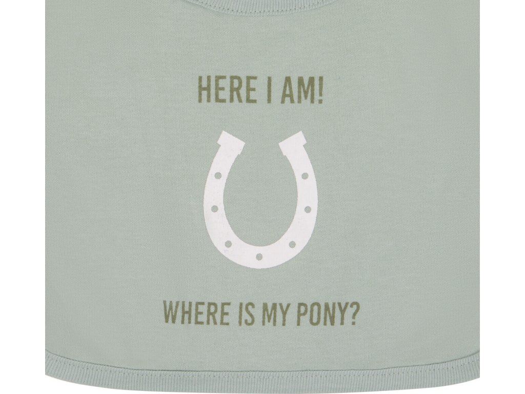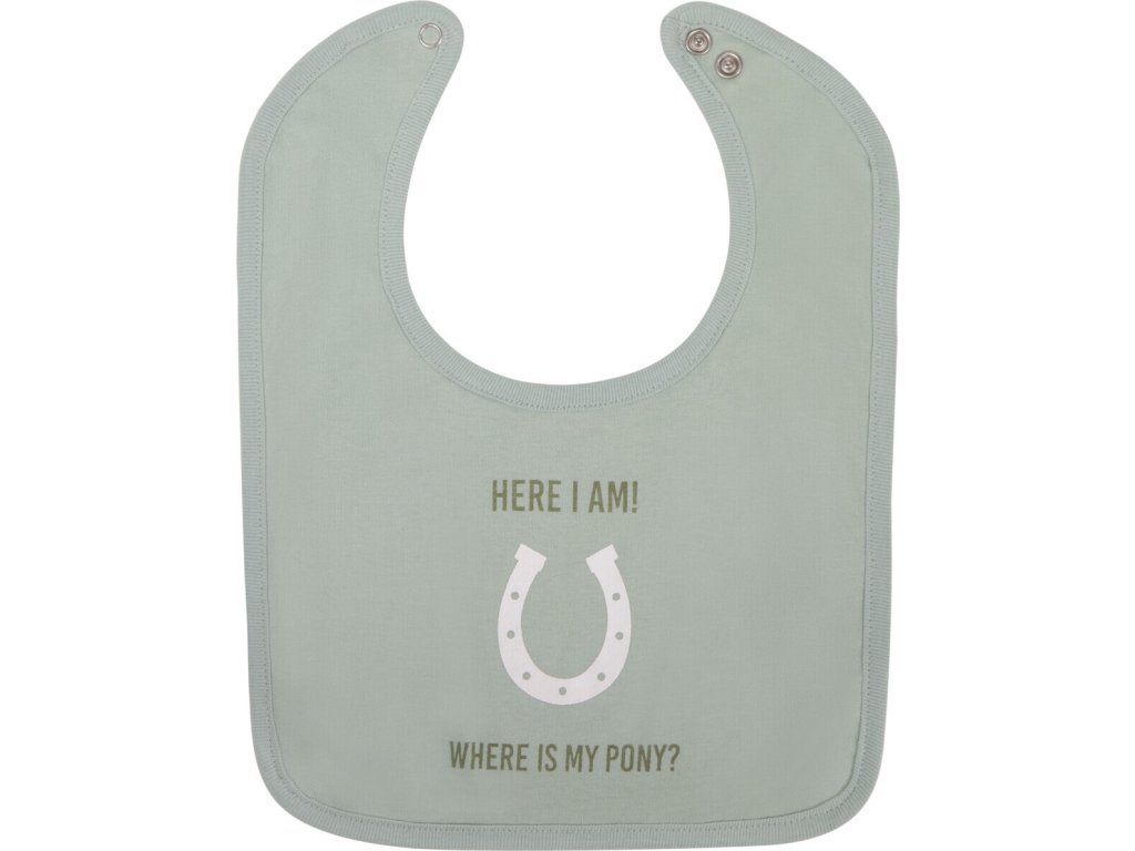 Roztomilý podbradník s vtipným textom a motívom podkovy. Zapínanie pomocou patentiek. Podbradník je vyrobený z príjemného bavlneného materiálu.
