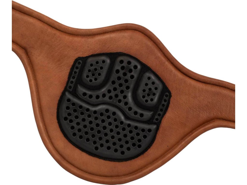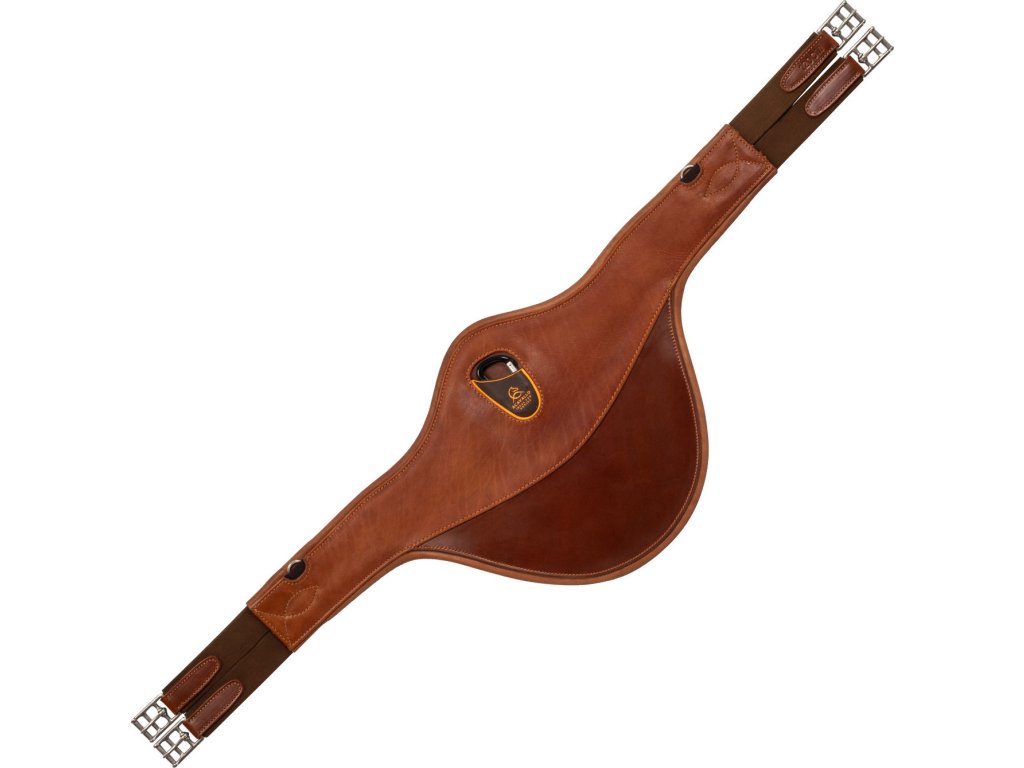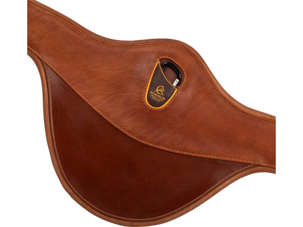 Veľmi kvalitný pohodlný podbrušník z teľacej kože vhodný na parkúr, vybavený špeciálnou Acavallo gélovou podložkou, ktorá je umiestnená vedľa hrudnej kosti. Spodná štruktúra je z robustnejšej hovädzej usne. Väčšie rozmery zaistia perfektnú ochranu hrudníka, pracky sú z nerezovej ocele prémiovej kvality, v strede je hliníkový háčik chránený mäkkým gumovým krytom napr. na martingal alebo poprsník, plus dva bočné D-krúžky.