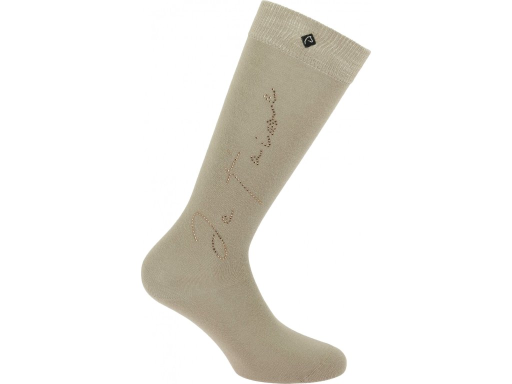 Kvalitné jazdecké podkolienky určené na pohodlné nosenie pri jazde na koni. Sú vyrobené z príjemného a pružného materiálu, ktorý zaisťuje komfort po celý deň. Elegantný vzhľad dopĺňajú jemné kamienky po strane, ktoré dodávajú podkolienkam štýlový a moderný vzhľad.