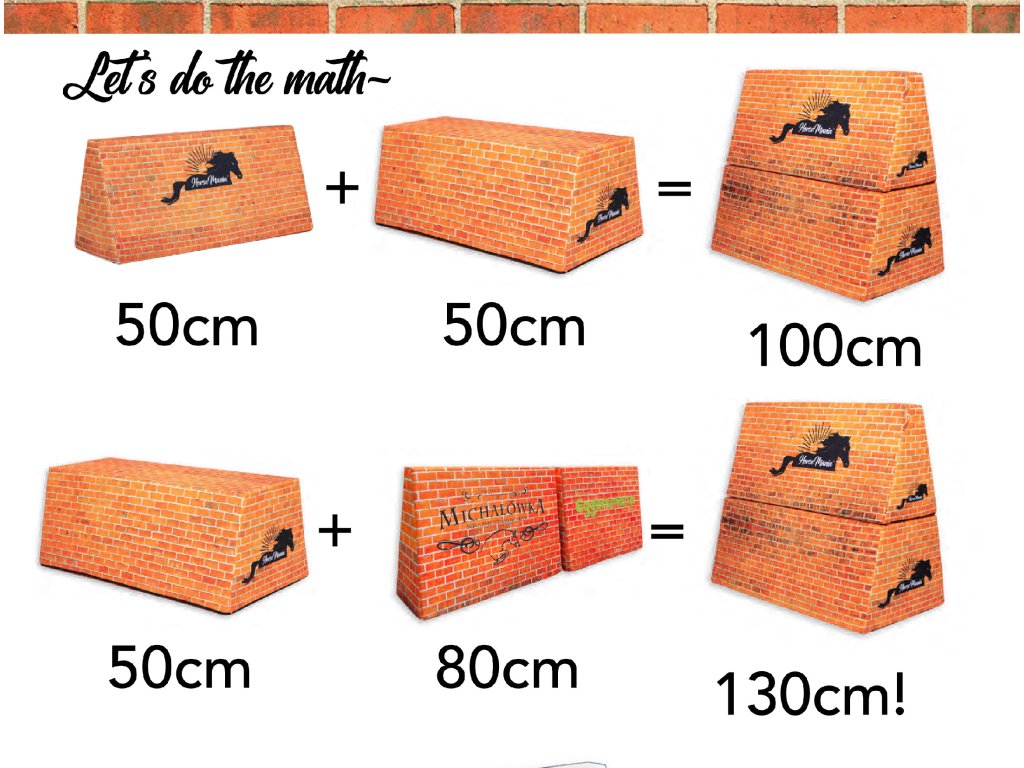 Praktický a bezpečný doplnok na zvýšenie penovej steny, ktorý umožňuje navýšenie jej výšky až o 50 cm. Je kompatibilný ako so štandardnou verziou (50 cm), tak aj s vyššou verziou (80 cm). Vďaka tomuto podstavcu môžete ľahko vytvoriť skoky s celkovou výškou až 100 alebo 130 cm. Podstavec je ľahký, stabilný a ľahko použiteľný, ideálny na postupné zvyšovanie obtiažnosti pri tréningu. Prekážky kombinujú bezpečnosť, odolnosť a realistický vzhľad. Sú ideálne na prípravu koní na preteky, umožňujú tréning s autenticky vyzerajúcou prekážkou v bezpečnom a pohodlnom prostredí. Vďaka odolnému a pritom ľahkému materiálu predstavujú efektívny spôsob, ako kone zoznámiť s náročnejšími prekážkami bez rizika zranenia. Realistické prevedenie pomáha budovať sebadôveru a istotu, zatiaľ čo mäkká penová výplň zaisťuje maximálnu bezpečnosť pre kone aj jazdcov. Prekážky boli navrhnuté tak, aby odolali pravidelnému používaniu a zároveň spĺňali široké spektrum tréningových potrieb. Ponúkajú vysokú kvalitu, dlhú životnosť a jednoduchú údržbu. Vrchná vrstva je vyrobená z odolného polyesterového materiálu, vnútornú výplň tvorí polyuretánová pena. Poťah je vybavený zipsom, takže je možné ho ľahko zložiť a vyčistiť. Rozmery: dĺžka: 110 cm, šírka: 60 cm, výška: 50 cm, váha: 12 kg. Upozornenie: Dizajny pre vás stále vylepšujeme, preto sa farby loga môžu líšiť od produktových fotografií.
