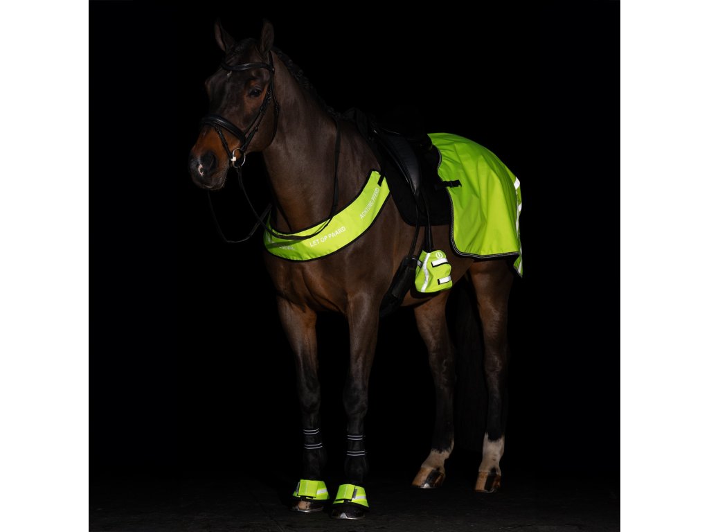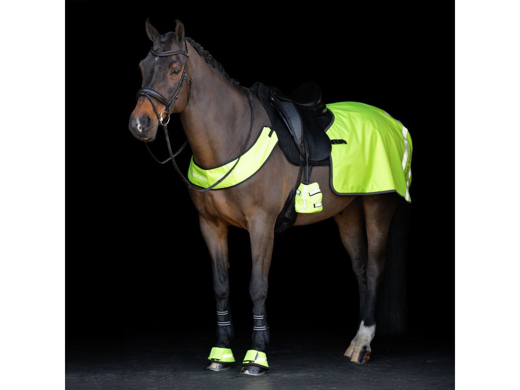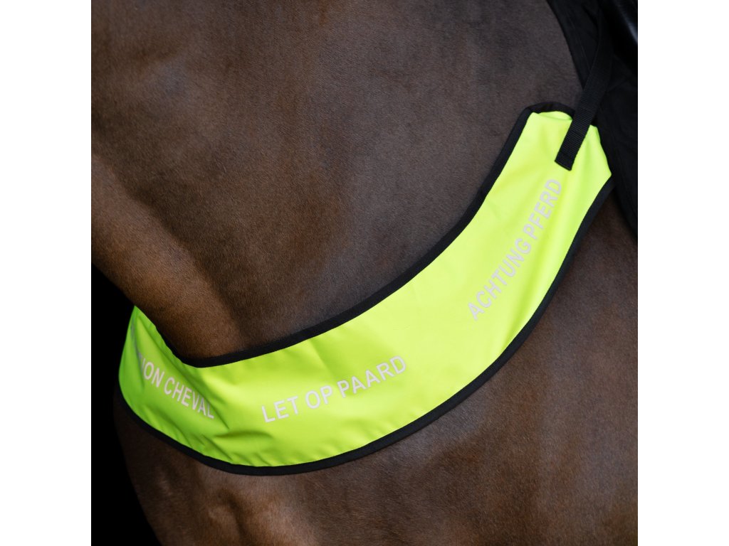 Reflexný poprsník, ktorý slúži ako praktický bezpečnostný prvok. Výrazne zvyšuje viditeľnosť koňa aj jazdca pri zhoršených svetelných podmienkach. Reflexný materiál zaisťuje lepšiu rozpoznateľnosť v šere, za tmy aj počas nepriaznivého počasia, čím prispieva k bezpečnejším vychádzkam v teréne aj v blízkosti cestnej premávky. Poprsník sa jednoducho upevňuje k očkám sedla pomocou suchého zipsu. Spoľahlivo drží na mieste a nijako neobmedzuje prirodzený pohyb koňa. Vyrábaný v jednej univerzálnej veľkosti FULL.