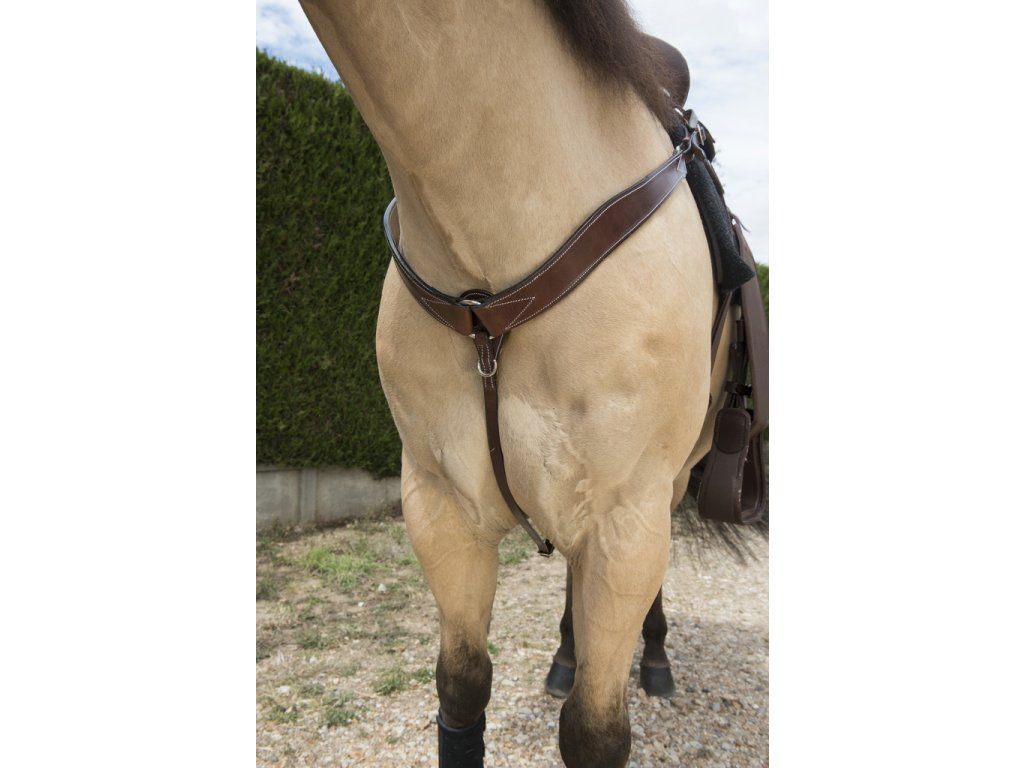 Kvalitný westernový poprsník vyrobený z dvojitej byvolej kože. Zdobený bielym prešívaním. Vybavený poniklovanými prackami.