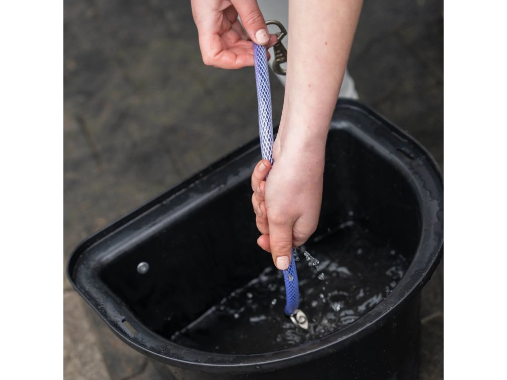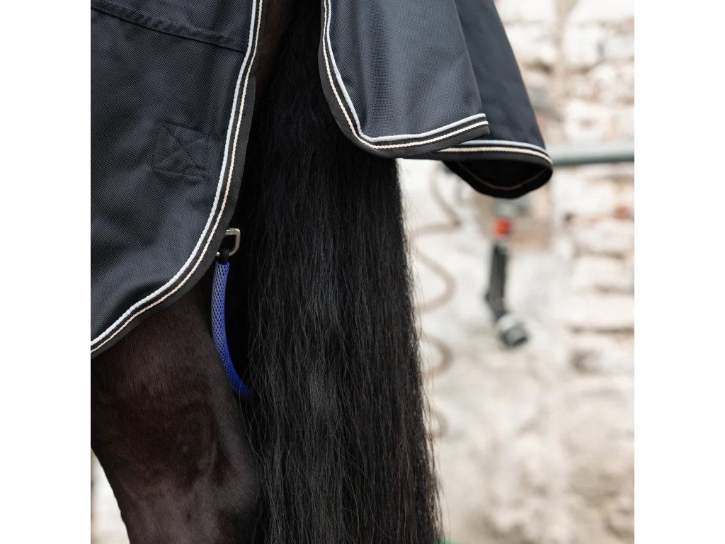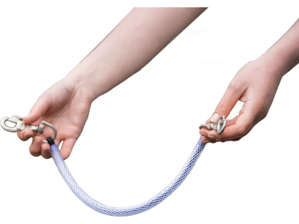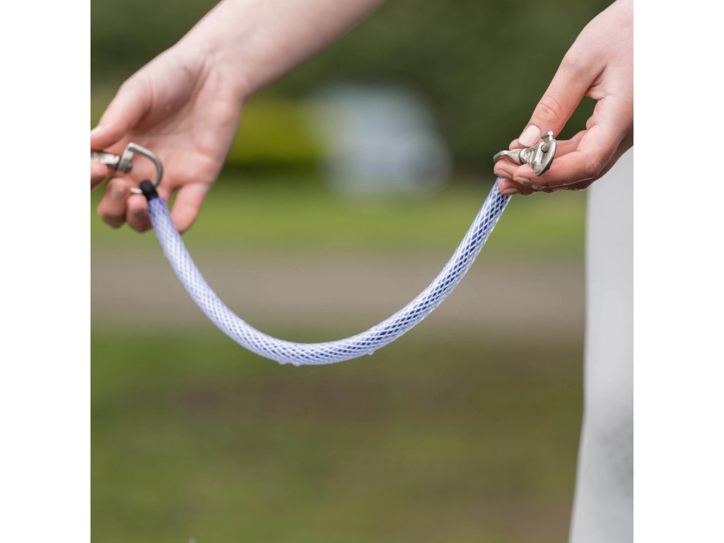 Popruh pod chvost Quick-Clean je praktickým doplnkom k dekám pre kone. Jednoduché používanie, čistenie a výmena. Popruh je vyrobený z pevného polypropylénového lana, chráneného PVC rúrkou, ktorá zabraňuje usadzovaniu nečistôt. Na oboch koncoch sa nachádza strieborná spona s karabínou na pripevnenie k deke. Celková dĺžka: 55 cm. Dodávané po 1 ks.