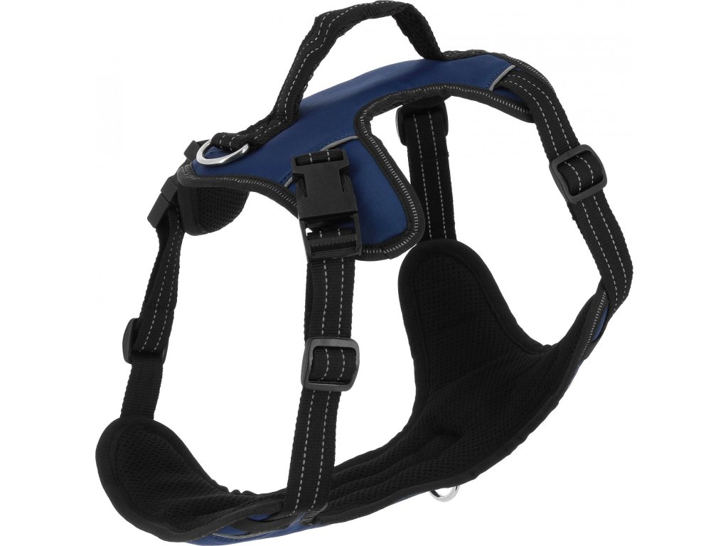 Priepustný a jemne polstrovaný postroj, ktorý sa ľahko nasadzuje a odopína vďaka dvom prackám. Reflexné prešívanie zaisťuje lepšiu viditeľnosť a bezpečnosť pri venčení. Viac bodov nastavenia umožňuje presné prispôsobenie. Postroj má upevňovací krúžok na hrudi aj na chrbte a praktickú rukoväť, ideálny pre psov so sklonom k ťahaniu.