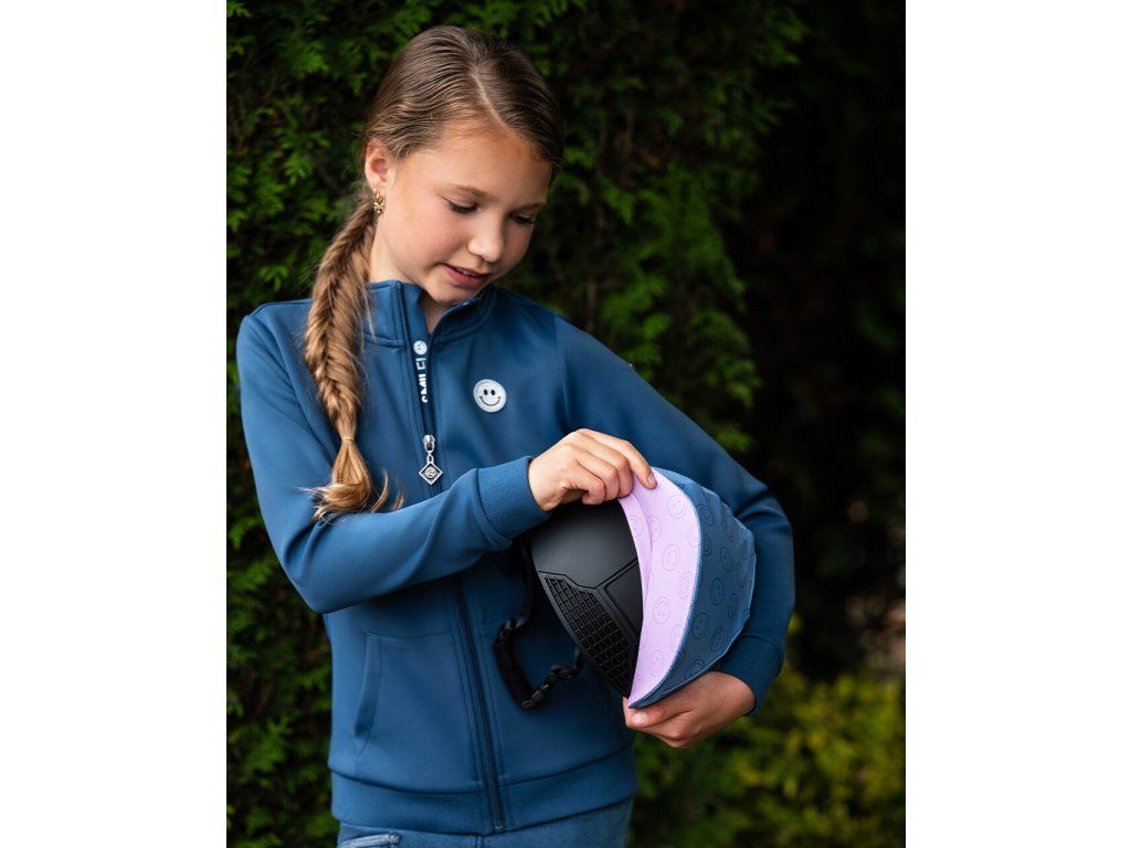 Obojstranný poťah na prilbu s veselou potlačou smajlíkov je vhodný pre prilby so šiltom aj bez neho. Mäkký šilt je bezpečný a pri páde neprekáža. Obojstranný dizajn umožňuje zvoliť ružovú alebo modrú farbu podľa nálady. Univerzálna veľkosť. Možno prať v práčke na 30 °C, nepoužívajte aviváž a nesušte v sušičke.