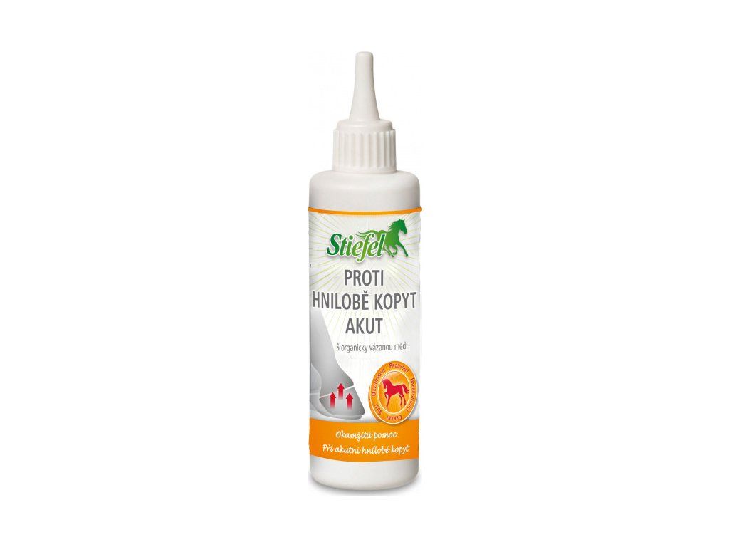 Veterinárny prípravok Stiefel proti hnilobe kopýt akut s organicky viazanou meďou, chráni strelku kopyta pred vonkajšími vplyvmi ako je čpavok alebo moč zo slamy, stará sa o strelku, udržuje ju suchú a chráni ju pred vonkajšími vplyvmi.