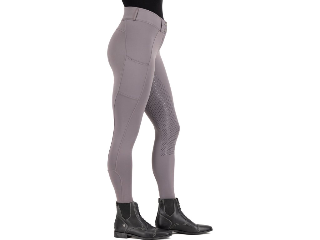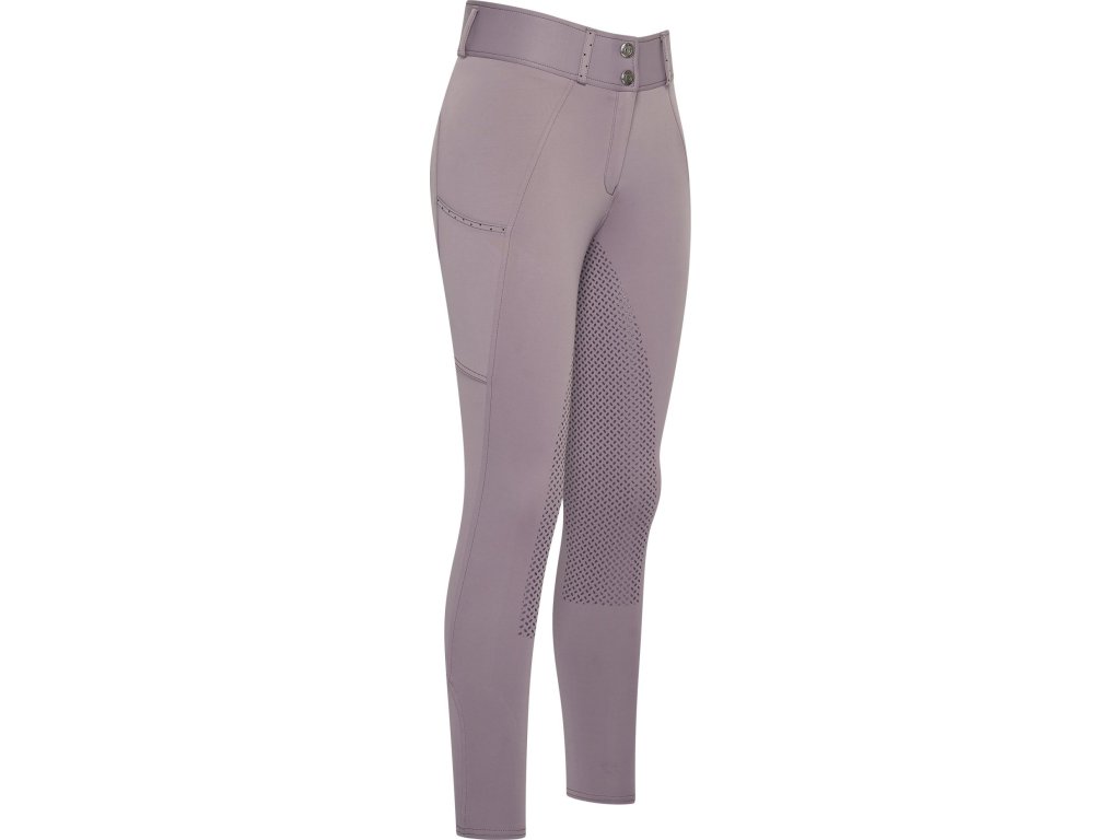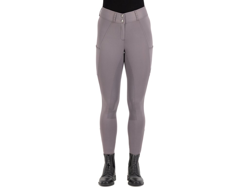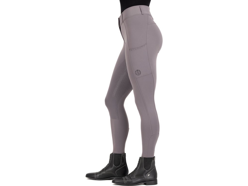 Letné jazdecké rajtky, ktoré sú vyrobené z priedušného materiálu. Štvorsmerný elastický materiál umožňuje maximálnu voľnosť pohybu a pohodlie, zatiaľ čo silikónový grip pozdĺž celej dĺžky sedu zaistí stabilný sed v sedle. Majú pútka na opasok a vrecko na telefón pozdĺž stehna. Zdobené decentnými kamienkami. Vysoký pás so zapínaním na dva gombíky podčiarkuje ženskú siluetu a poskytuje pohodlie pri jazde.